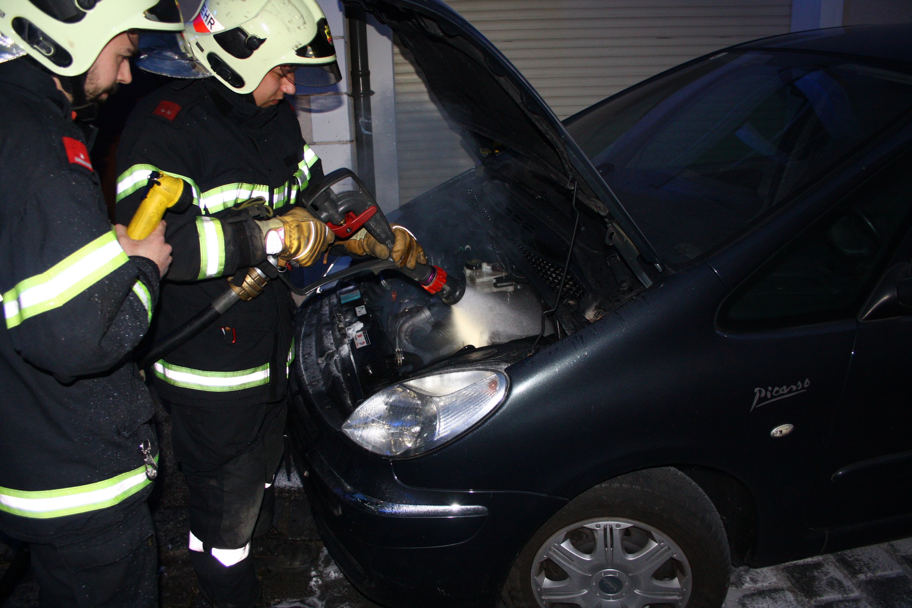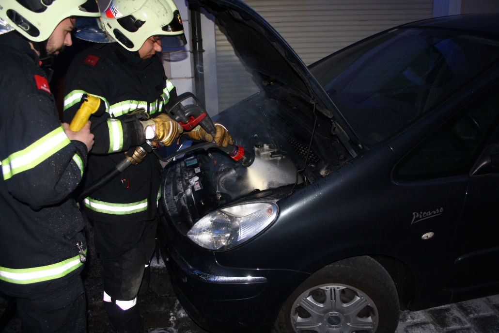 Unter der Einsatzleitung von HBM Andreas Michalitz wurde beim Eintreffen der Feuerwehr festgestellt, dass bereits erste Löschmaßnahmen mit einem Feuerlöscher perfekt griffen. Die Feuerwehr kontrollierte mit einer Wärmebildkamera und löschte nur noch kleinere Glutnester im Motorraum ab.