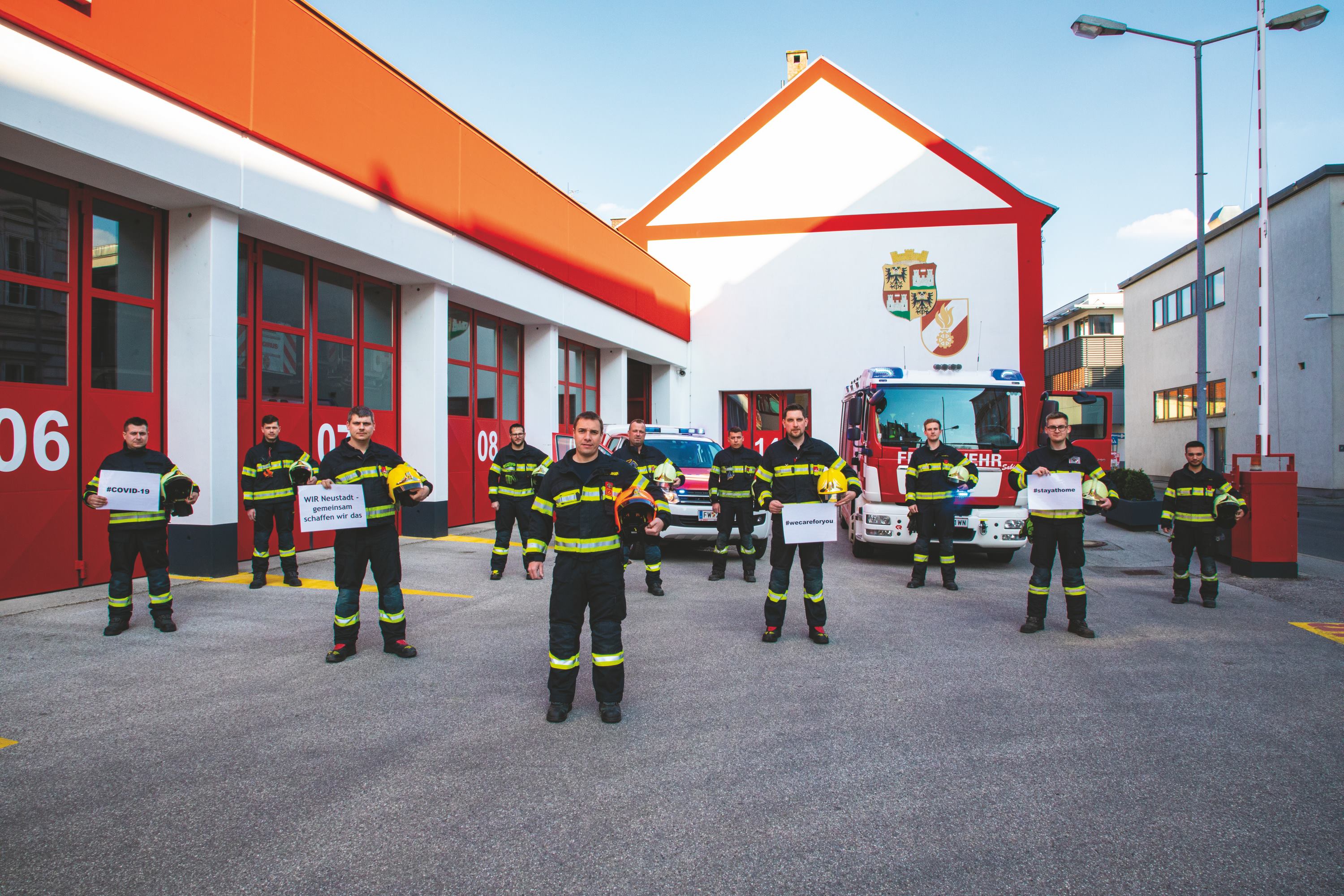 Die Freiwillige Feuerwehr Wiener Neustadt steht seit 15. März mit einer Tageseinsatzbereitschaft von neun Ehrenamtlichen und einer Nachtbereitschaft von vier bis sechs Freiwilligen im Einsatz. Das Feuerwehrhaus ist abgeriegelt, um eine Infektion der Mannschaft zu vermeiden und somit auch die Einsatzbereitschaft zu erhalten. Der Appell an alle Personen, sich zu Hause aufzuhalten, sofern keine dringenden Tätigkeiten ein verlassen des Wohnraumes verlangen, bleibt aufrecht. „Wir bleiben in Einsatzbereitschaft! Bleiben Sie bitte daheim!“, appelliert Kommandant Josef Bugnar an alle Wiener Neustädterinnen und Wiener Neustädter. #wirneustadt