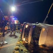Am Einsatzort angekommen stellte der Einsatzleiter fest, dass keine Menschen in den Fahrzeugen eingeklemmt oder in Gefahr waren. Der Klein-Lkw kam auf dem Pkw auf dessen Beifahrerseite zu liegen. „Wäre hier jemand gesessen, wäre es schlimm ausgegangen“, so einer der Feuerwehrmänner. Wie durch ein Wunder blieben alle Beteiligten unverletzt.
