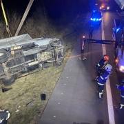 Die Feuerwehr richtete den Klein-Lkw mit den zwei Kränen von Rüst 1 und Last 4 auf und stellte diesen am Fahrbahnrand zur weiteren Bergung durch ein gewerbliches Unternehmen ab. „Heute waren die Schutzengel auf der Südautobahn beschäftigt. Andernorts hatten die Unfallbeteiligten leider nicht so viel Glück“, so Kommandant Josef Bugnar. Die Feuerwehr unterstützte das Unternehmen bei der Abschleppung und sicherte das Abschleppfahrzeug bei der Fahrt ab.