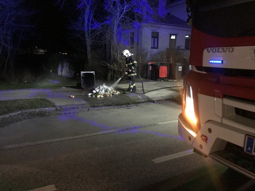 Zum zweiten Mal in zwei Nächten brannte in der Nacht auf Freitag, 06.03., in der Pottendorferstraße eine Mülltonne. Durch erste Löschmaßnahmen durch Passanten und die eingetroffene Polizei konnte der Brand noch vor Eintreffen der Feuerwehr niedergehalten werden. Die Feuerwehr führte dann noch Nachlöscharbeiten durch und kontrollierte mit einer Wärmebildkamera auf Glutnester. Die Polizei stellte Erhebungen zur Brandursache an.