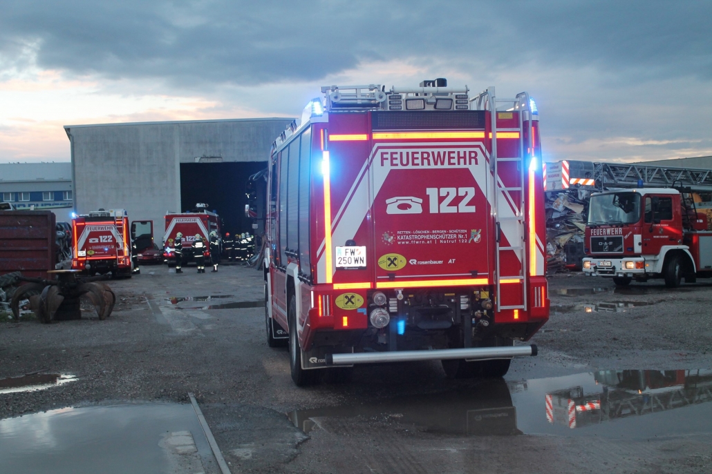 Starke Rauchentwicklung meldete ein Anzeiger am Montagabend, 25.05., aus einer Lagerhalle eines Wiener Neustädter Schrottplatzes. Aus unbekannter Ursache kam es zu einem Brand in einer weitläufigen Halle. Das Feuer musste mit mehreren Rohren bekämpft werden. Um alle Glutnester abzulöschen, musste der brennende Unrat mit einem Greifarm auseinandergezogen werden. Verletzt wurde niemand, die Polizei übernahm die Ursachenerhebung für das Feuer.
