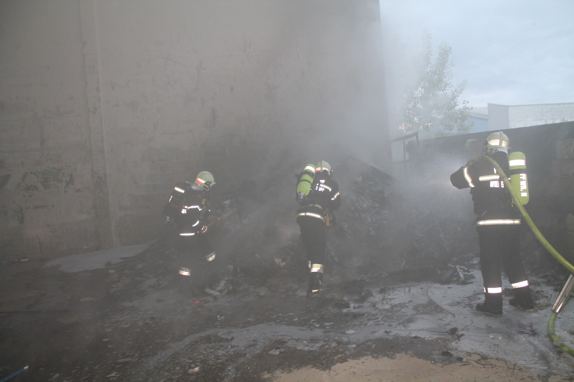 Die ersten anrückenden Feuerwehrfahrzeuge konnten die schwarze Rauchsäule bereits bei der Anfahrt zum Einsatzort deutlich erkennen. Während weitere Einsatzkräfte, durch den Personenrufempfänger alarmiert, noch auf Anfahrt in die Wiener Neustädter Feuerwehrzentrale waren, traf das erste Tanklöschfahrzeug bereits ein. Die Vermutung, die ganze Halle würde in Brand stehen, bestätigte sich glücklicherweise nicht. Am hinteren Teil der Lagerhalle brannte jedoch ein größerer Haufen Unrat, was zu der starken Rauchentwicklung führte.