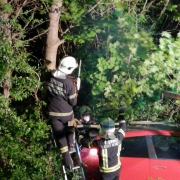 Die Nachtbereitschaft der Freiwilligen Feuerwehr Wiener Neustadt setzte sich sofort in Bewegung und rückte mit einem schweren Rüstfahrzeug und einem Großtanklöschfahrzeug als Absicherungsfahrzeug zum Einsatzort aus. Da der Pkw nahe einer Baumgruppe auf den Rädern zum Stehen kam, konnte der Lenker das Fahrzeug selbst verlassen. Die Einsatzkräfte mussten den Pkw von Geäst befreien um diesen mittels Kran des schweren Rüstfahrzeuges bergen zu können. Das Fahrzeug musste danach zu einem Abstellplatz geschleppt werden.