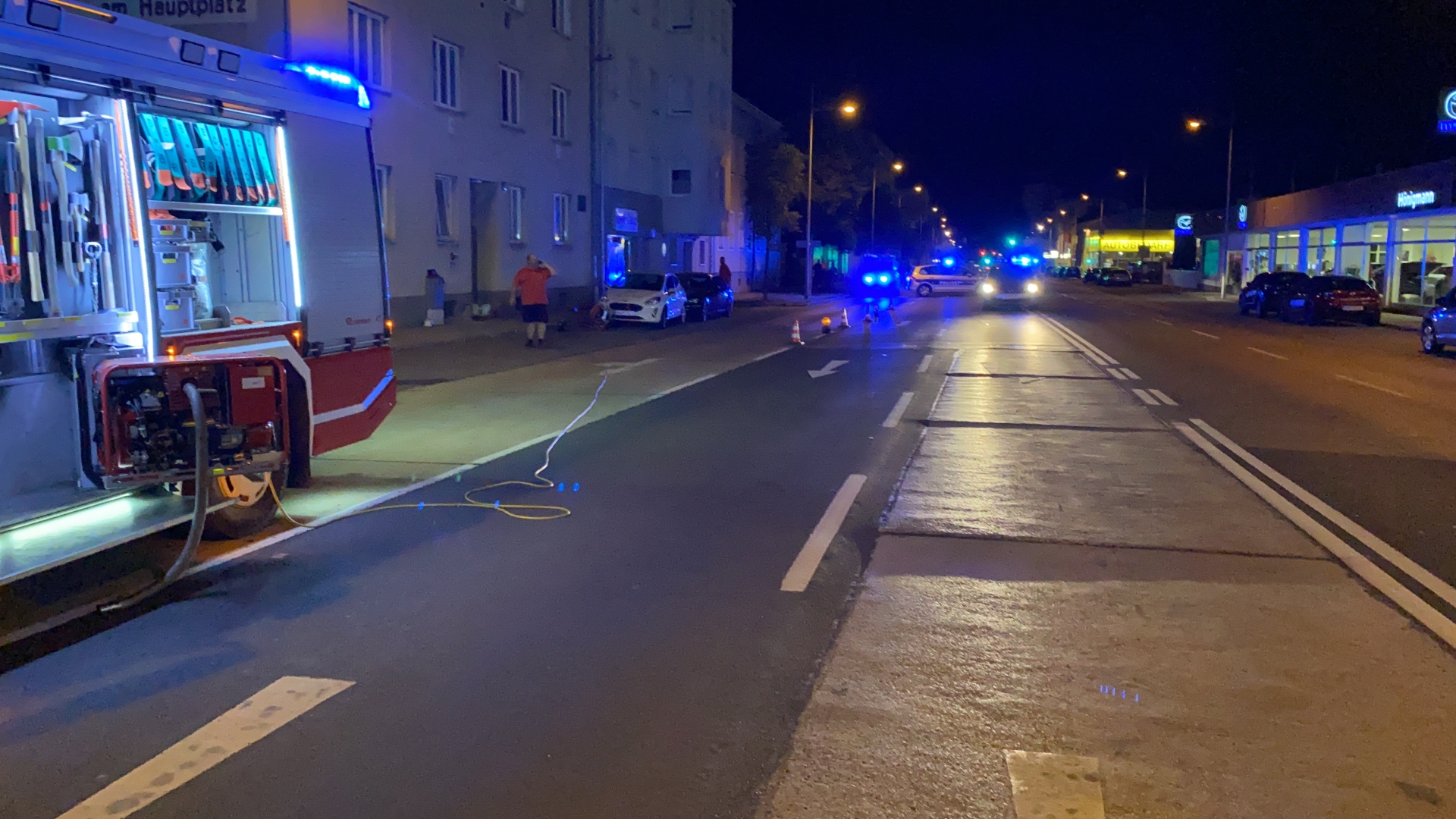 Die Neunkirchnerstraße war für die gesamte Dauer des Einsatzes in beide Fahrtrichtungen komplett gesperrt. Neben der Feuerwehr und dem Energieversorgungsunternehmen standen auch mehrere Polizeistreifen sowie der Bezirkseinsatzleiter, ein Notarzteinsatzfahrzeug und mehrere Rettungwagen des Roten Kreuz im Einsatz.