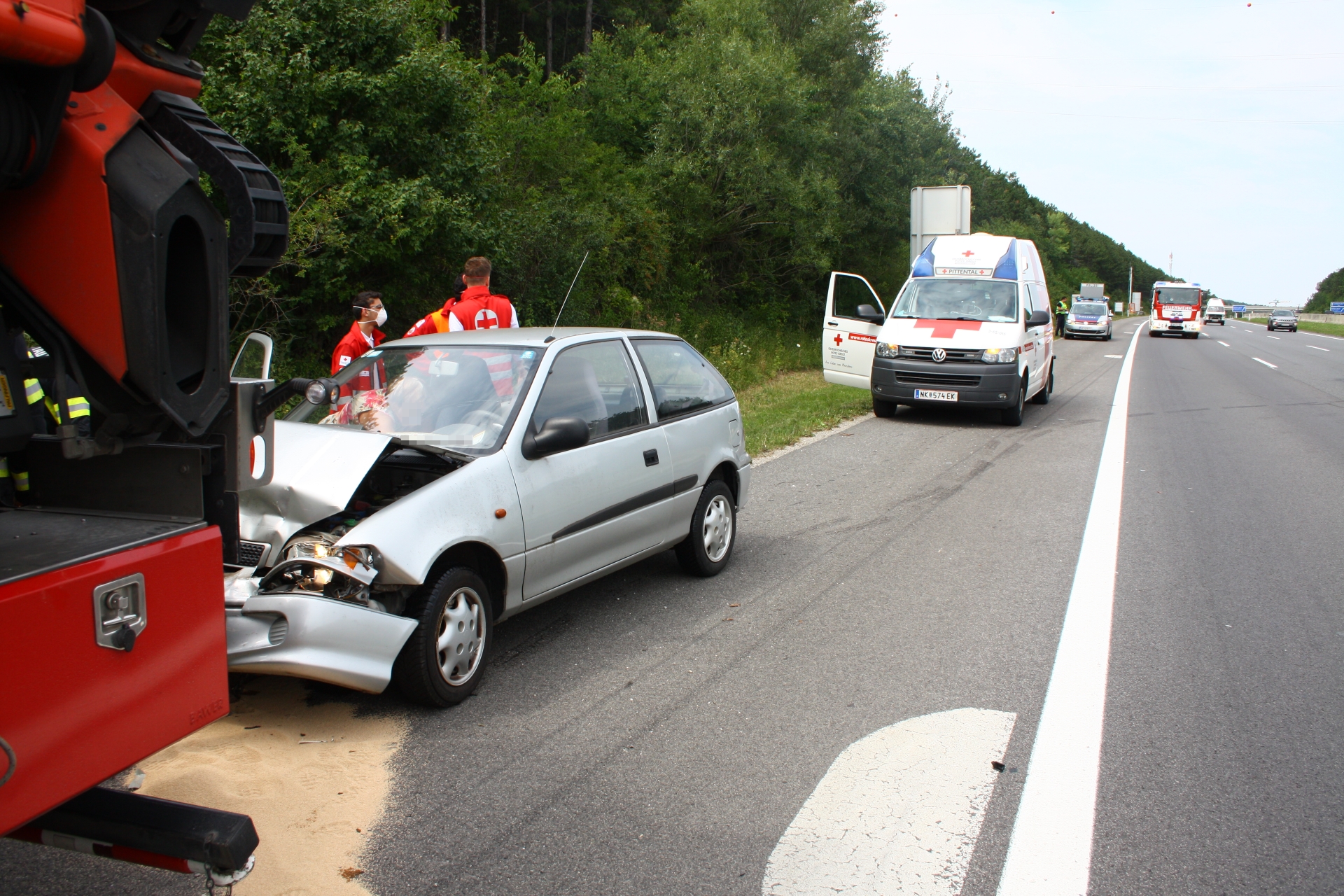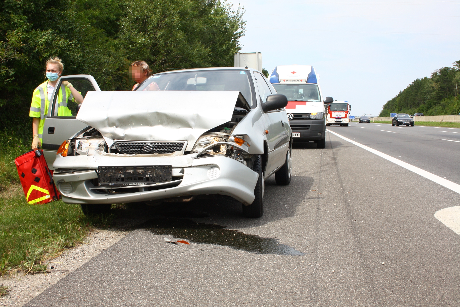 Nach einem Auffahrunfall blieb am Samstagnachmittag auf der A2 in Fahrtrichtung Graz der Pkw einer Wiener Autolenkerin fahruntüchtig auf dem Pannenstreifen stehen. Die Lenkerin wurde bei dem Aufprall unbestimmten Grades verletzt und musste vor Ort vom Roten Kreuz versorgt werden. Die Feuerwehr führte die Fahrzeugbergung durch und musste geringe Mengen auslaufendes Betriebsmittel binden.