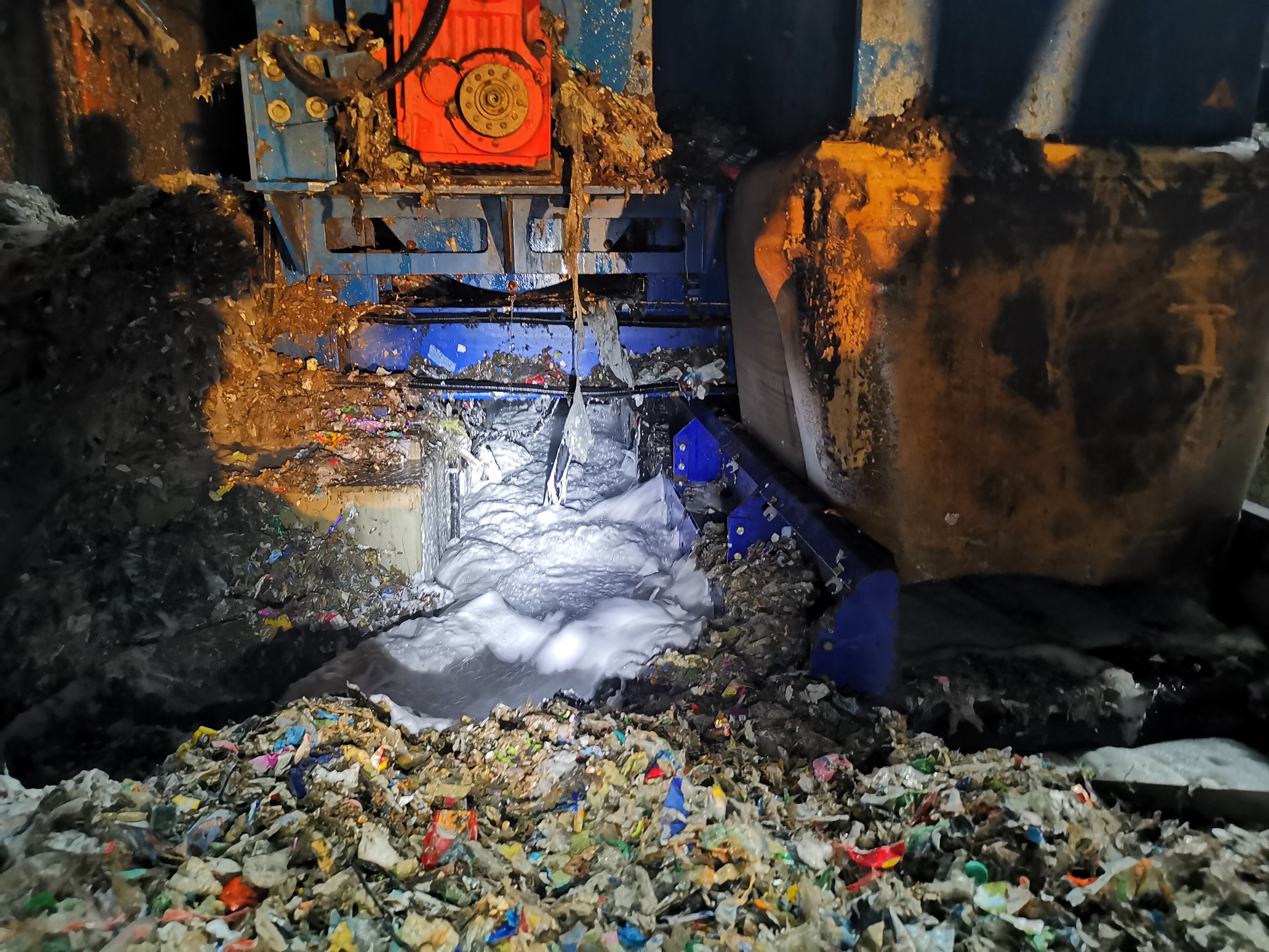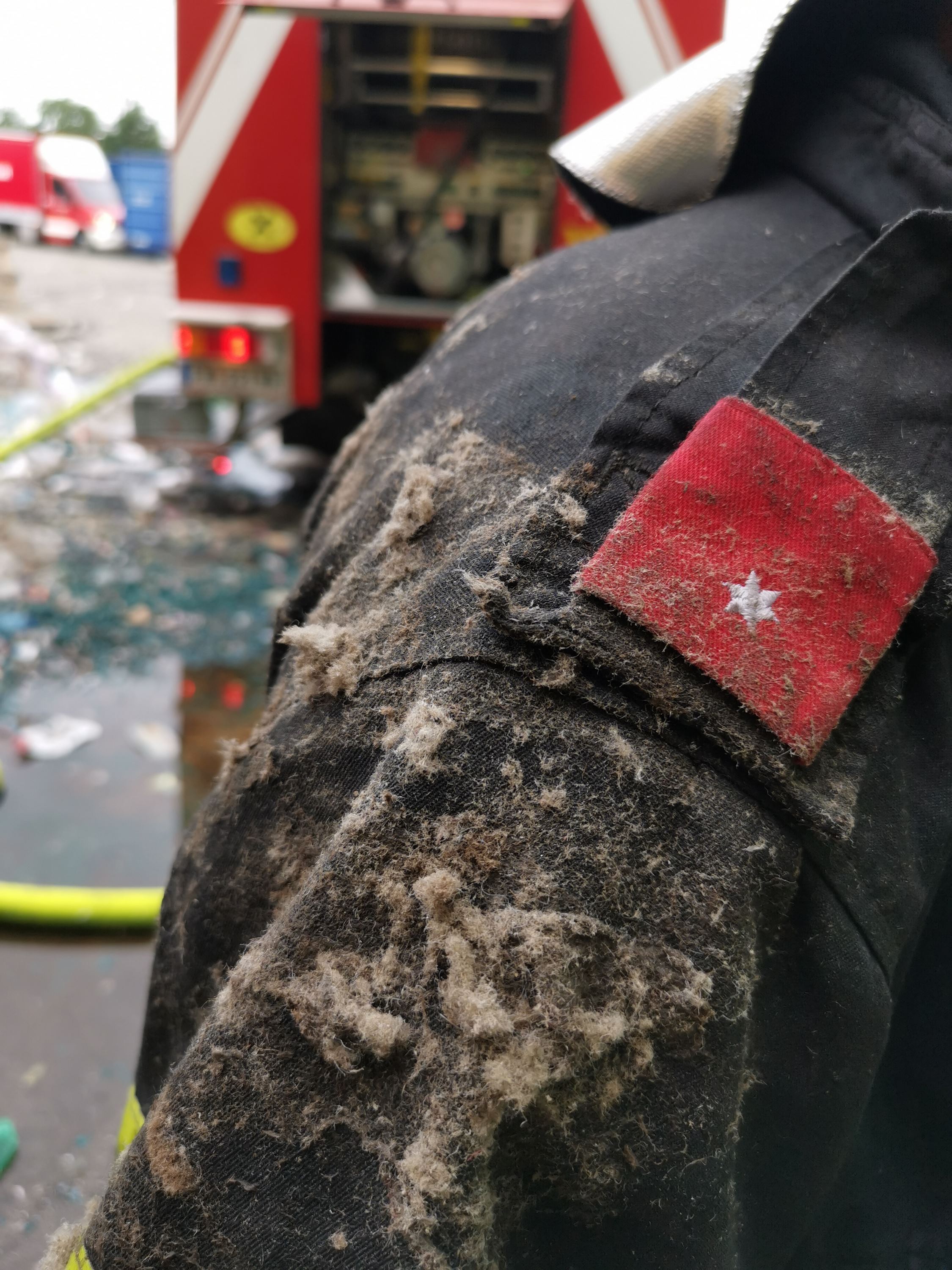 Bei den Nachlöscharbeiten wurde die Maschine mit Schaummittel geflutet, da die Glutnester nicht erreicht werden konnten. „Dabei zerstört das Schaummittel die Oberflächenspannung des Löschwassers, wodurch es noch weiter in das Brandgut eindringen kann“, so Pfeiffer. Mit einem Schaumrohr wurde dann noch der Bereich unter dem Förderband geflutet.