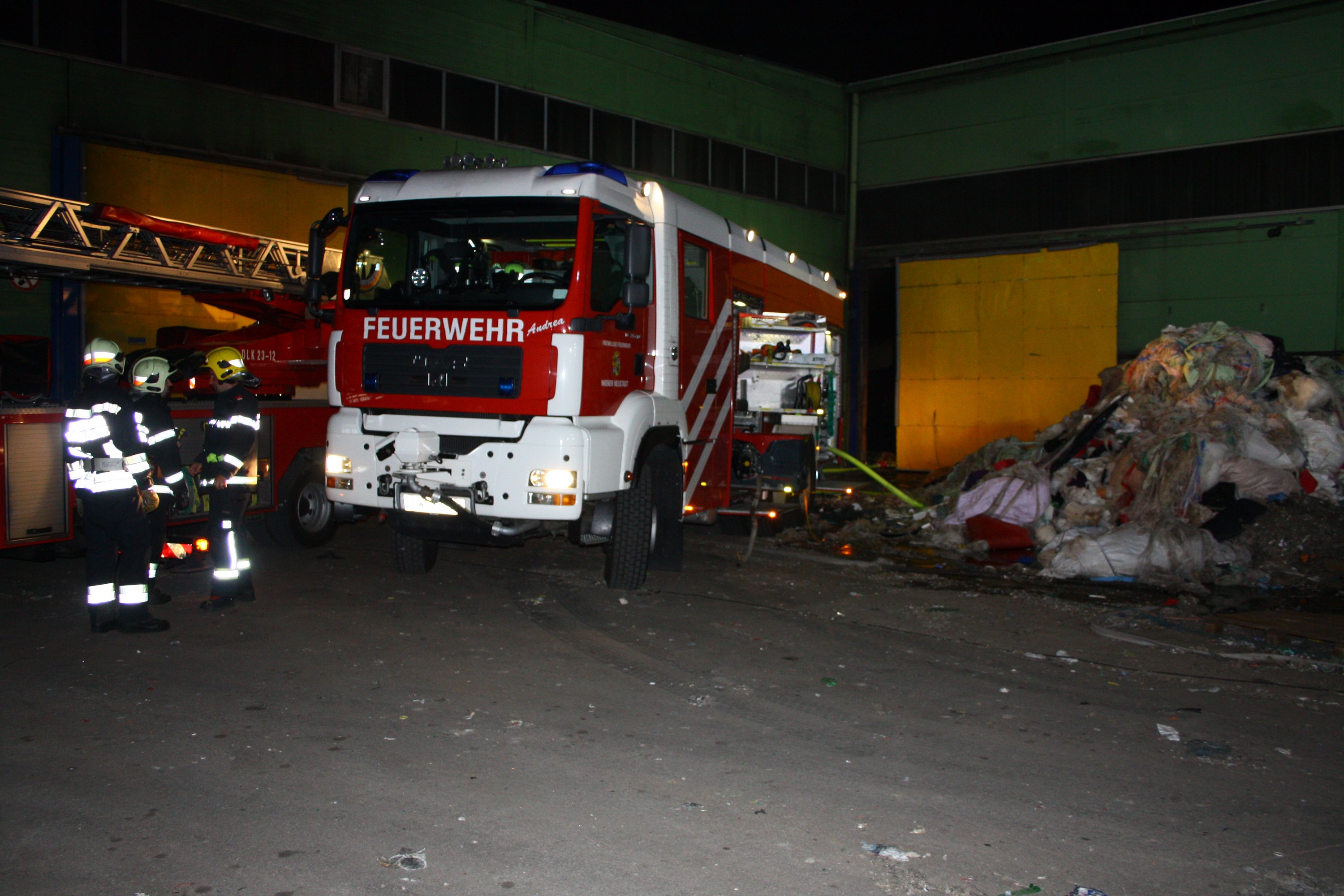 Aus bislang unbekannter Ursache entzündete sich in einer Schredderanlage Kunststoffmüll des Kunststoffentsorgungsbetriebes in Wiener Neustadt.