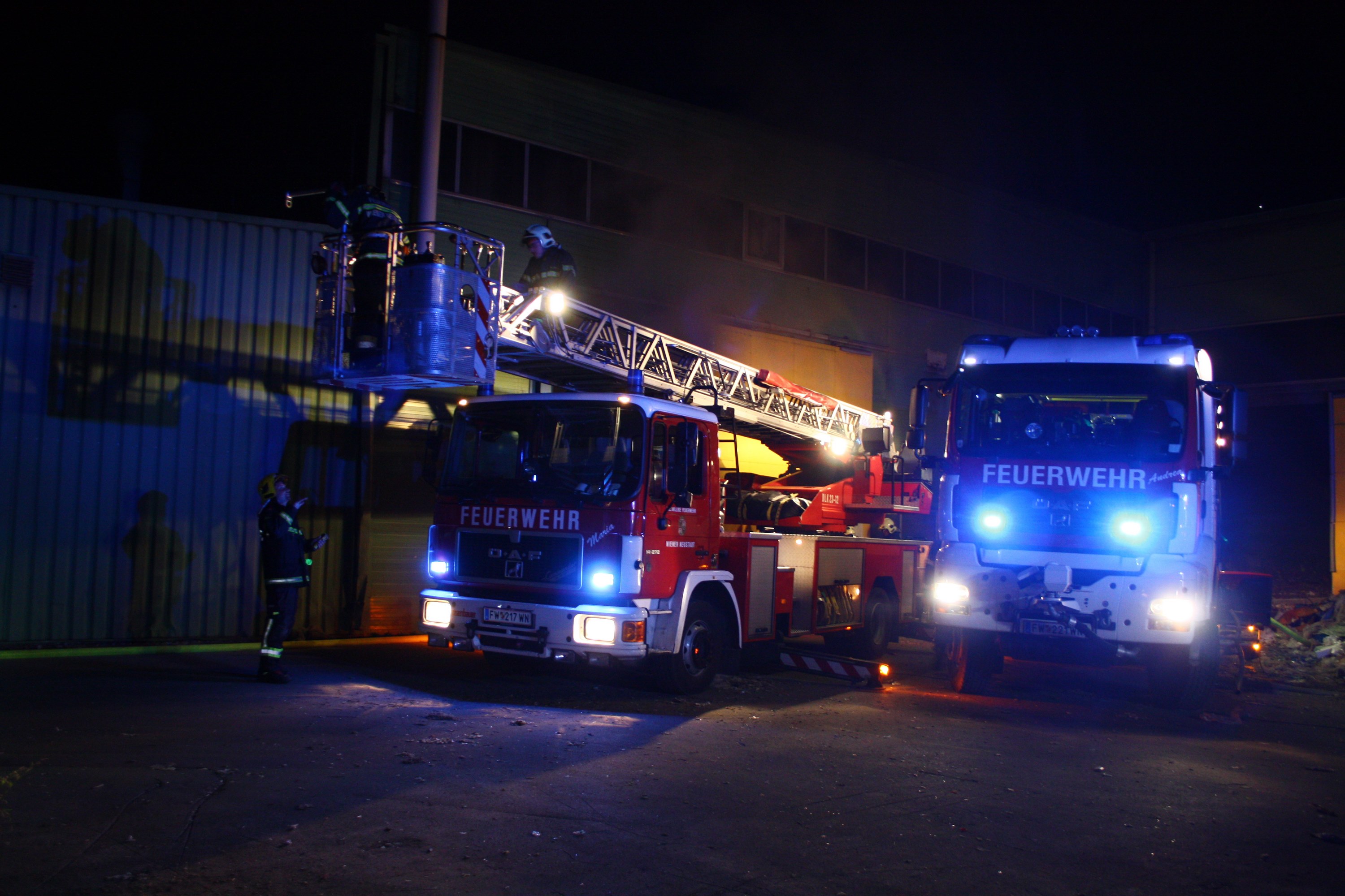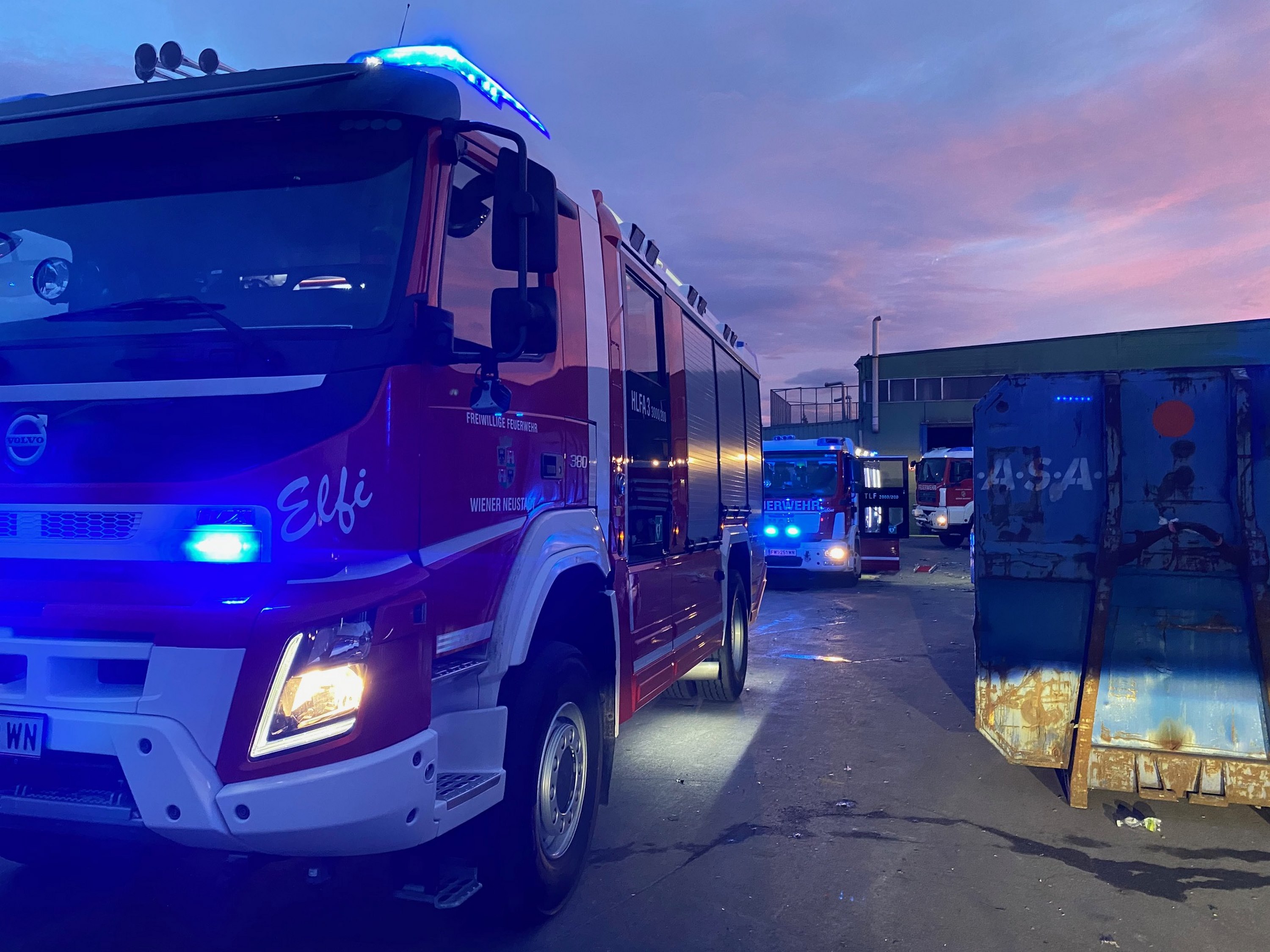 Um 02:42 Uhr am 26. August wurde über die automatische Brandmeldeanlage eines Wiener Neustädter Entsorgungsbetriebes ein Brand gemeldet. Kurz darauf traf durch einen Angestellten die Brandbestätigung ein.