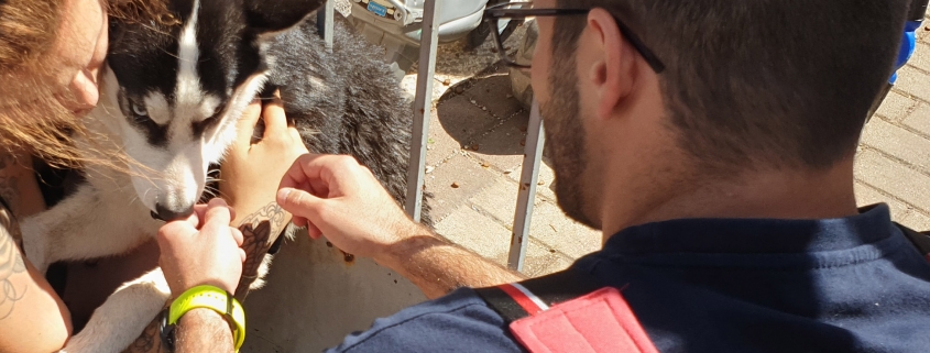 Das Huskyweibchen Luna war etwas zu ungestüm und blieb zwischen den Stäben eines eisernen Gartentores am Flugfeldgürtel stecken. Da der Hund von der Besitzerin nicht selbst befreit werden konnte, wurde die Feuerwehr Wiener Neustadt am Nachmittag des 25.8. zur Hilfe gerufen.