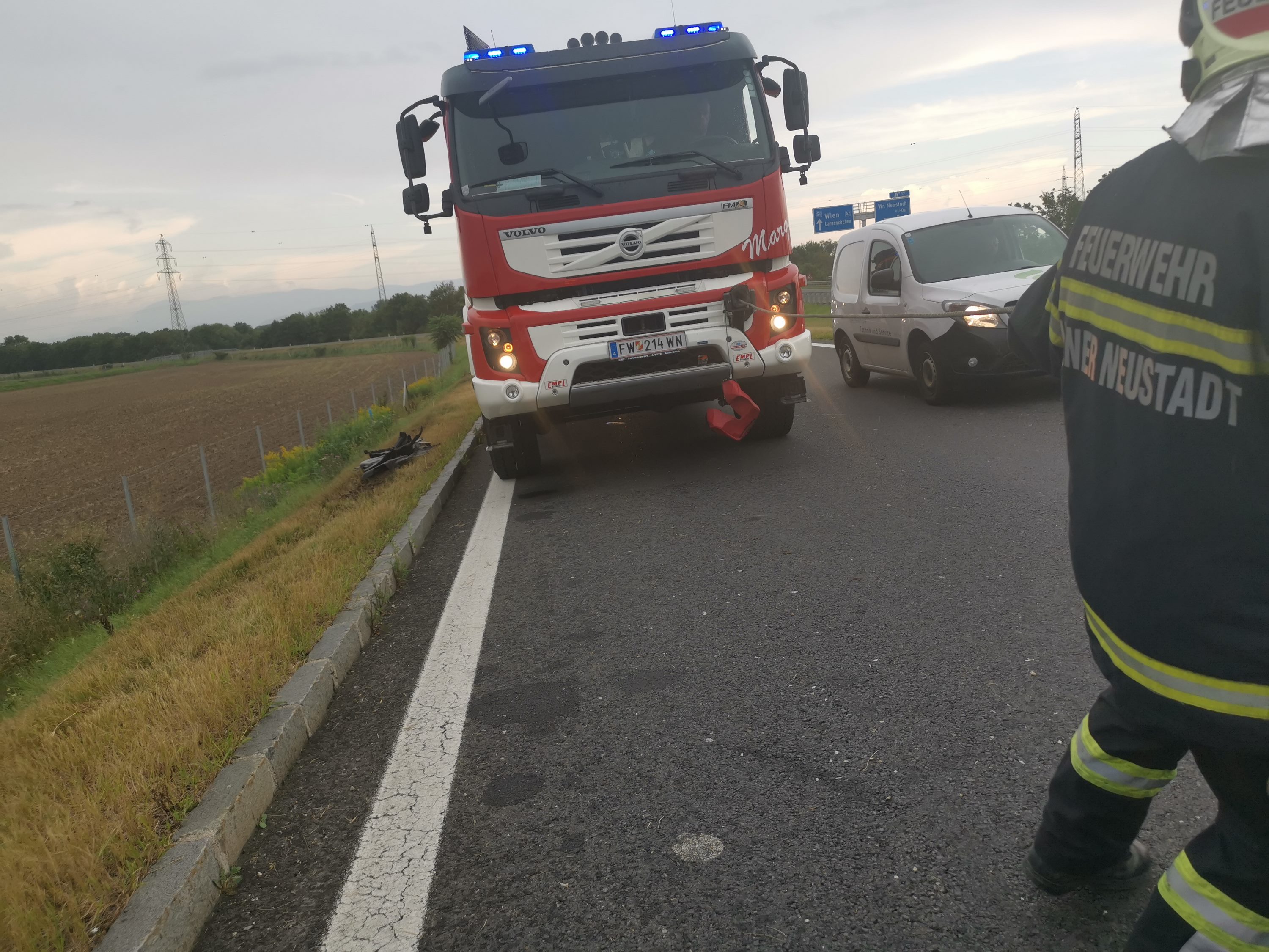 Am Nachmittag des 17. August wurde die Feuerwehr Wiener Neustadt zu einer Fahrzeugbergung alarmiert. Die Hausmannschaft der Feuerwehr Wiener Neustadt rückte unverzüglich mit dem Großtanklöschfahrzeug zur Absicherung und dem schweren Rüstfahrzeug zur Bergung aus.
