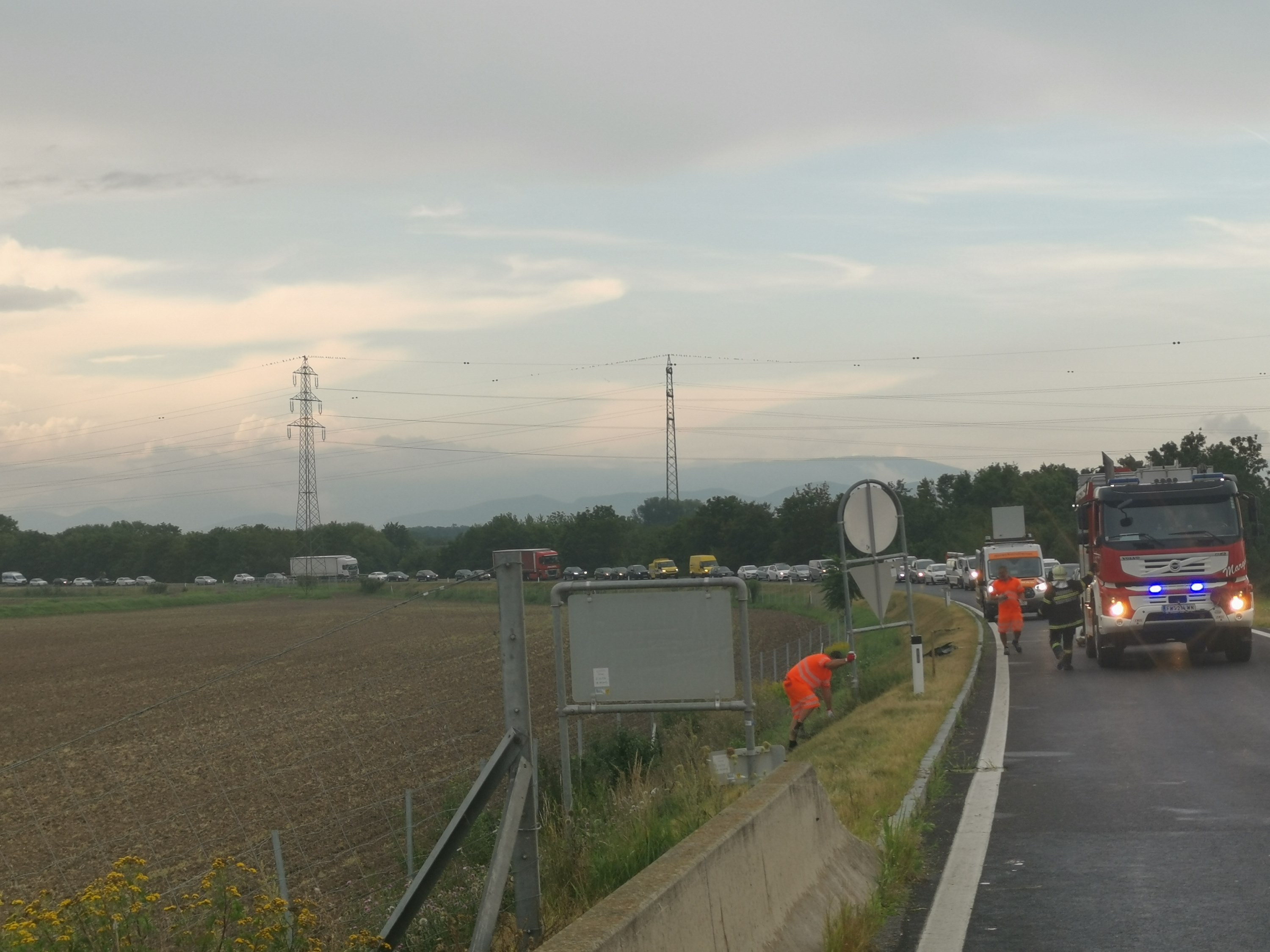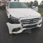 Der Mercedes war in den Graben gerutscht und verhakte sich mit dem Wildschutzzaun. Die Einsatzkräfte zogen den Mercedes mittels Seilwinde wieder auf die Fahrbahn, hängten das havarierte Fahrzeug mit einer Abschleppstange und Radrollern an das Rüstfahrzeug und verbrachte es von der Schnellstraße, von wo es durch ein gewerbliches Unternehmen abgeschleppt wird.
