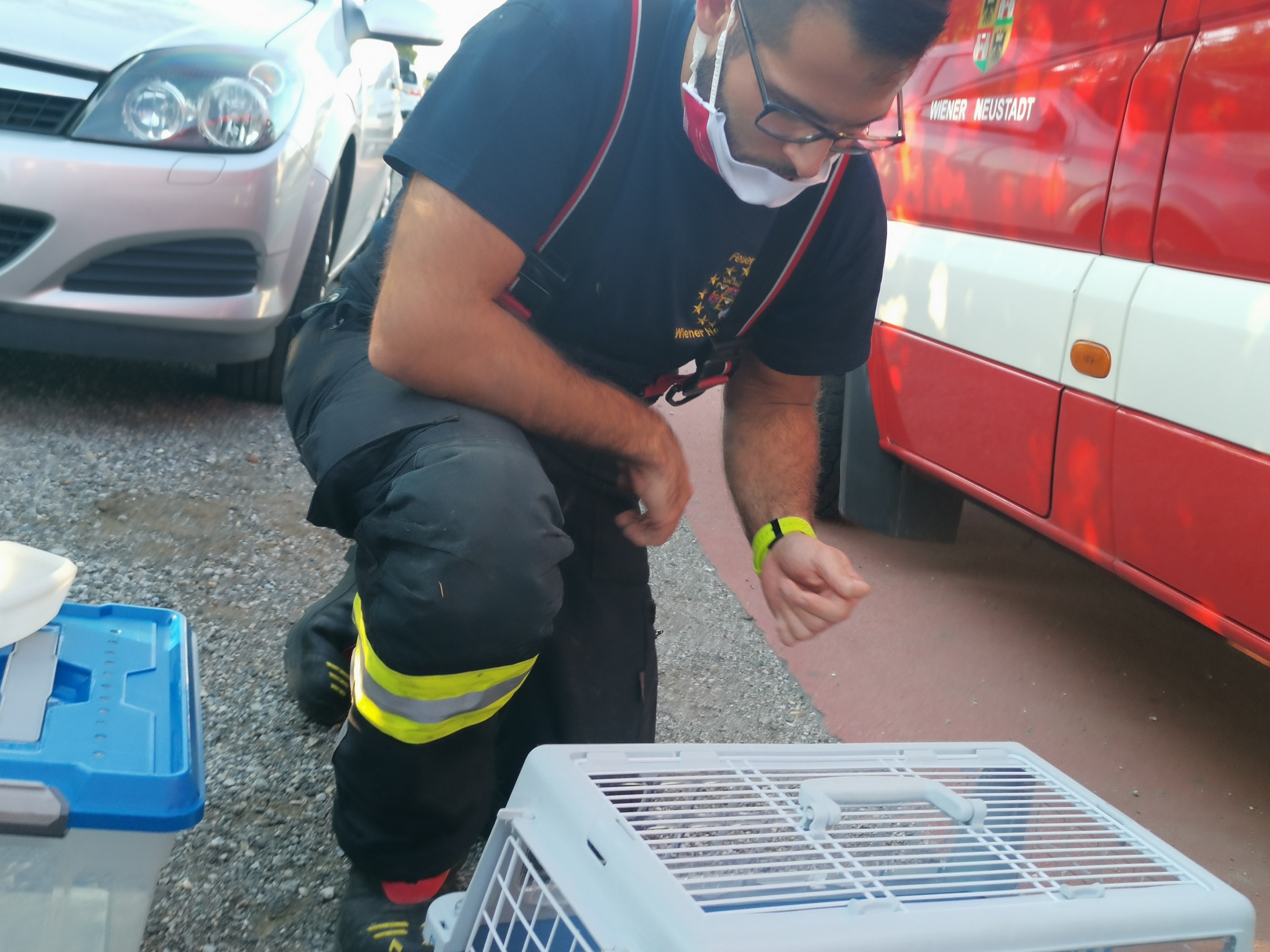 Eine aufmerksame Autofahrerin aus St. Veit an der Triesting entdeckte auf der Badener Straße ein querendes Babykaninchen, welches sich unter einem Auto verkroch. Da sie es selbst nicht erreichte rief sie die Feuerwehr Wiener Neustadt zur Hilfe.