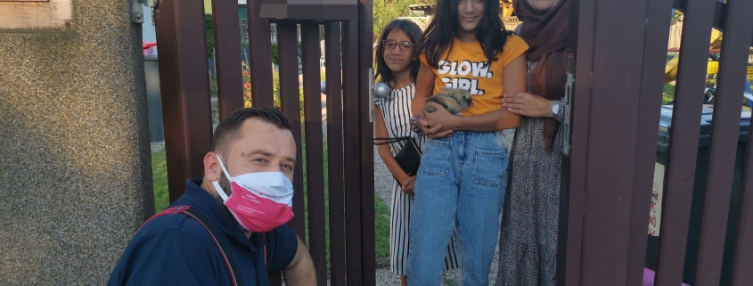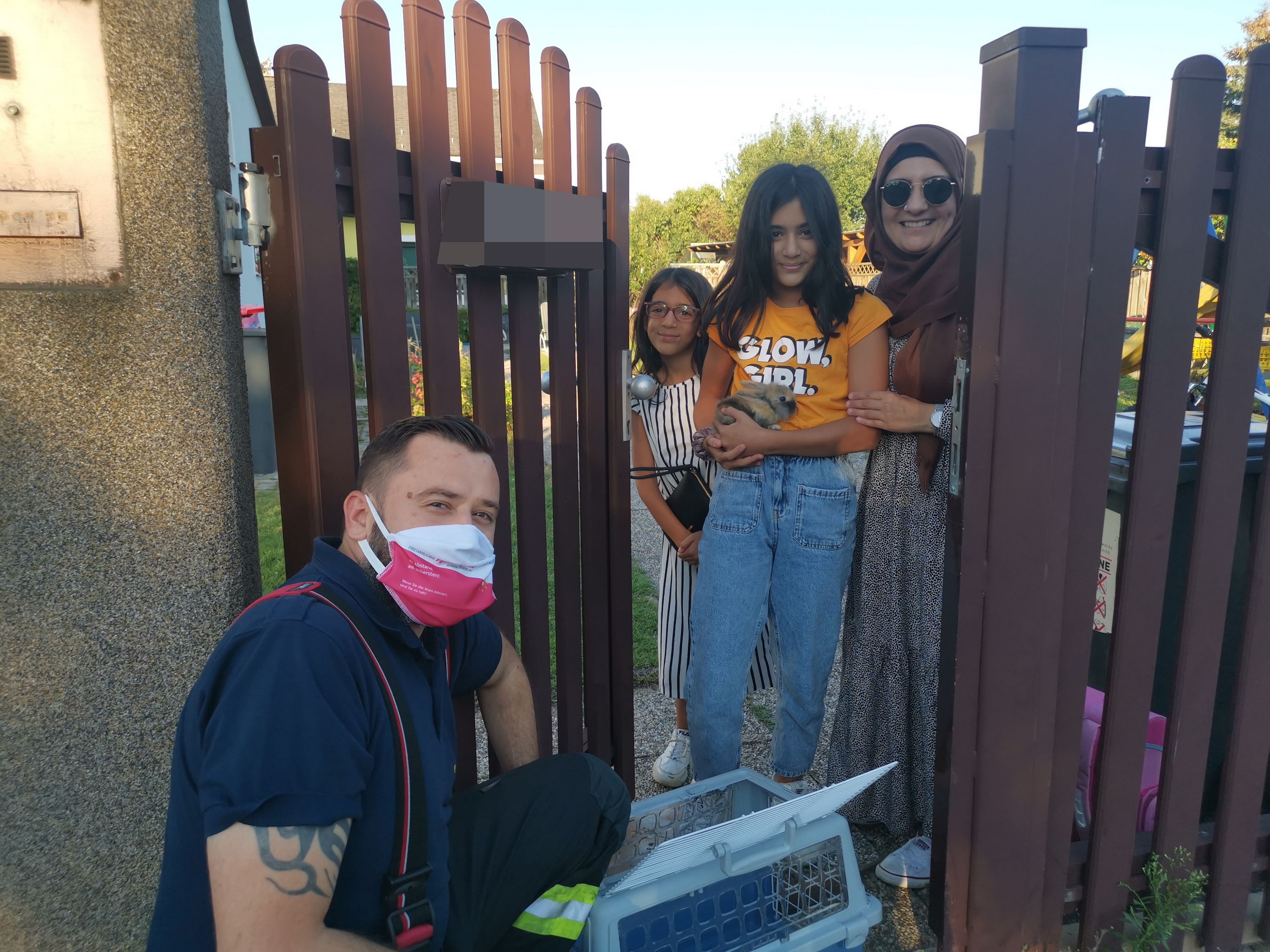 Nach kurzer Wartezeit traf die Familie ein. Die jungen Töchter der Familie freuten sich sichtlich, dass es dem Kaninchen gut ging und versicherte den Feuerwehrkameraden, dass das Gehege künftig besser gesichert wird.