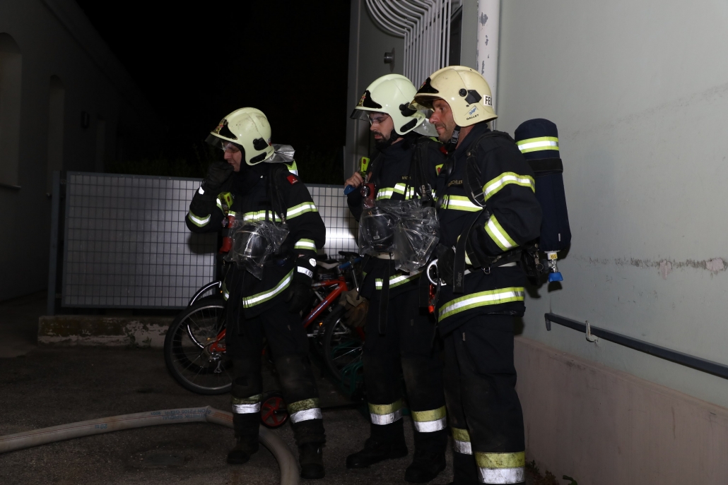Vor Ort wurde der Brandherd rasch im Bereich einer Schaumstoffmatratze lokalisiert. Gleichzeitig mit der Brandbekämpfung wurde noch eine gewissenhafte Suche nach im Gebäude verbliebenen Personen durchgeführt. Durch den brennenden Schaumstoff wurde der gesamte Wohntrakt der Einrichtung massiv verraucht. Die Feuerwehr musste den ganzen Gebäudeteil mittels Rauchvorhang vom Verwaltungsteil abtrennen, während mittels Überdruckbelüftung versucht wurde, das Gebäude rasch wieder rauchfrei zu machen.