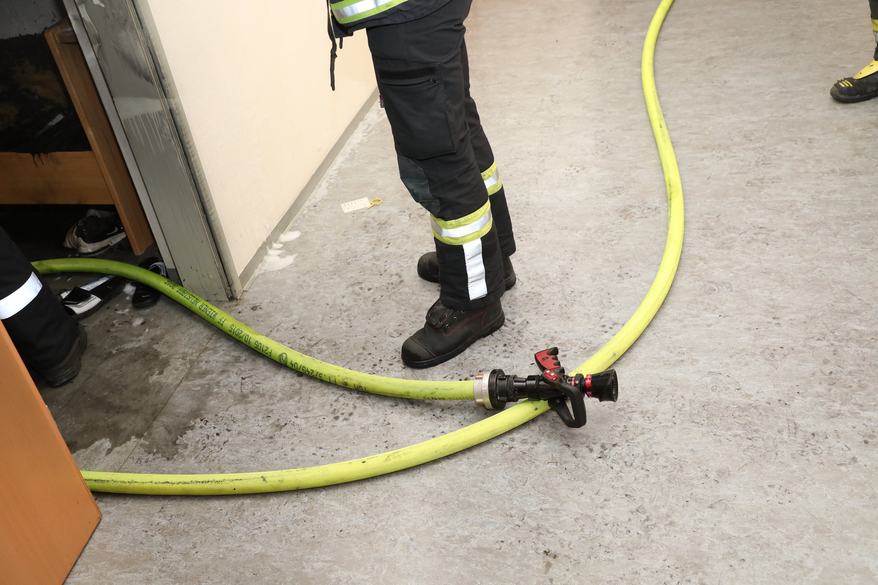 Das Feuer, was sich trotz der ersten Löschversuche bereits auf größere Teile der Einrichtung ausgebreitet hatte, konnte mittels einer Löschleitung rasch gelöscht werden. Wie sich später herausstellte, wurde das Gebäude auch rechtzeitig vollständig geräumt. Personen kamen somit nicht zu schaden.
