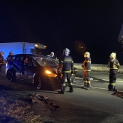 Vor Ort eingetroffen stellte sich glücklicherweise heraus, dass keine Person mehr in dem verunfallten Ford mehr eingeklemmt war. Alle Insassen konnten das Unfallfahrzeug selbstständig verlassen. Die Besatzungen von mehreren Rettungswägen und einem Notarzteinsatzfahrzeug kümmerten sich um zwei, unbestimmten Grades verletzte, Personen.