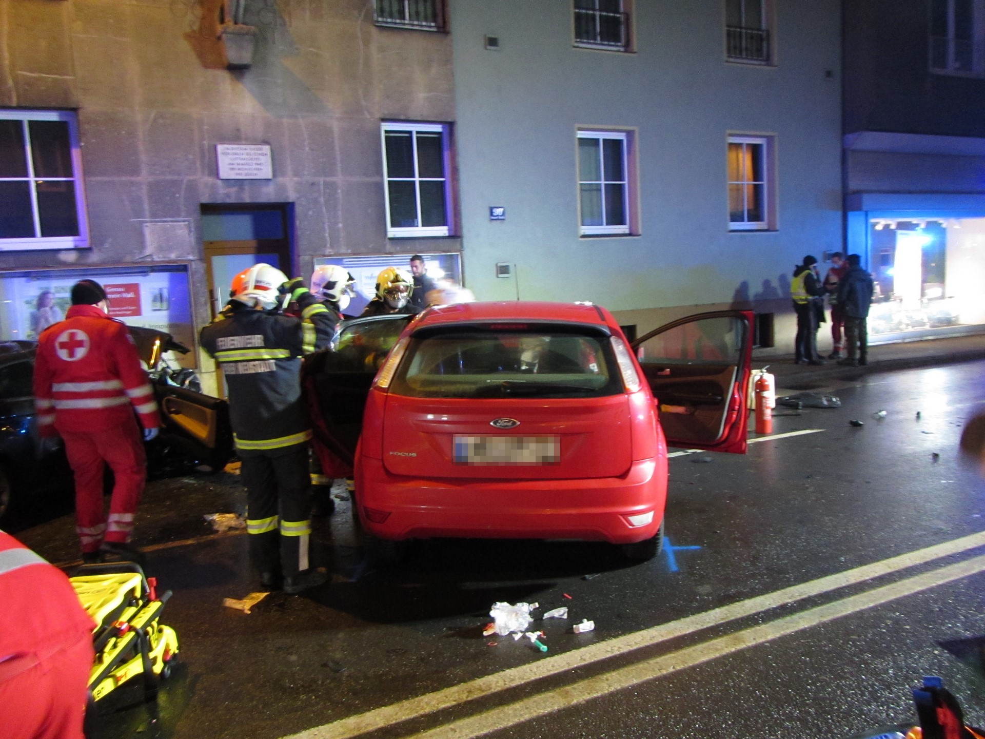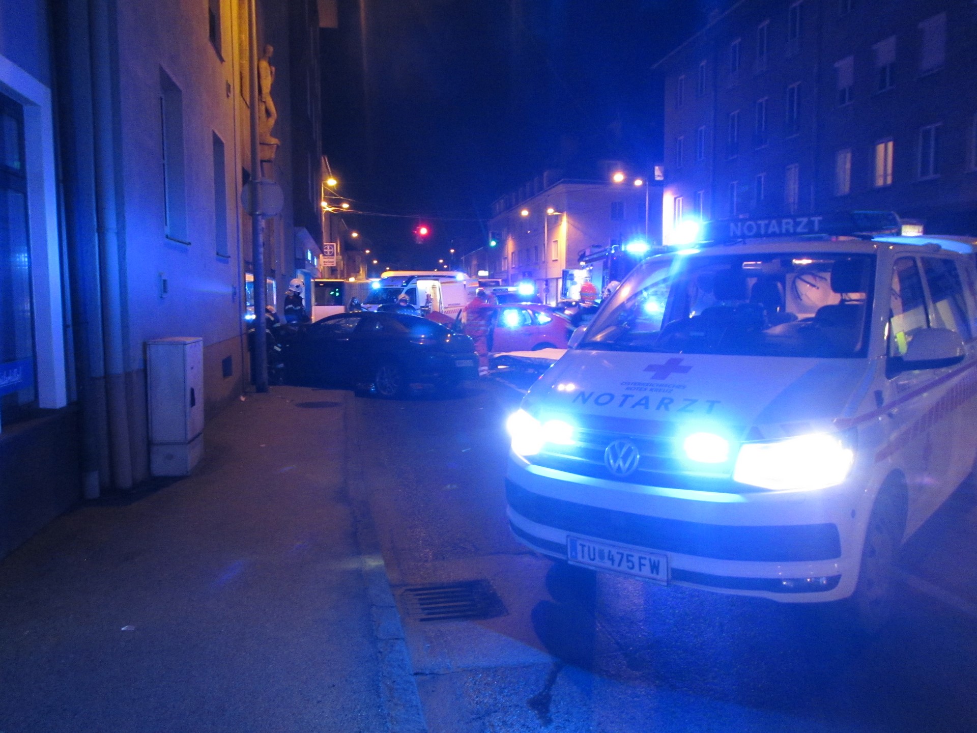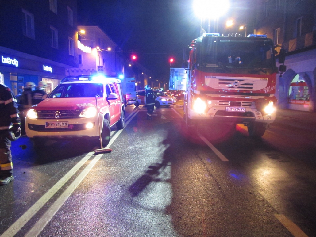 Am Abend des 23.12. rückten mehrere Feuerwehr- Rettungs- und Polizeifahrzeuge zu einem schweren Verkehrsunfall im Stadtgebiet aus. In der Grazerstraße kam es auf Höhe „neues Rathaus“ zu einem Frontalzusammenstoß sowie einem Auffahrunfall zwischen mehreren Fahrzeugen. Ein zufällig vorbeikommender Rettungswagen setzte die erste Lagemeldung ab und begann, die Rettungsmaßnahmen zu koordinieren.