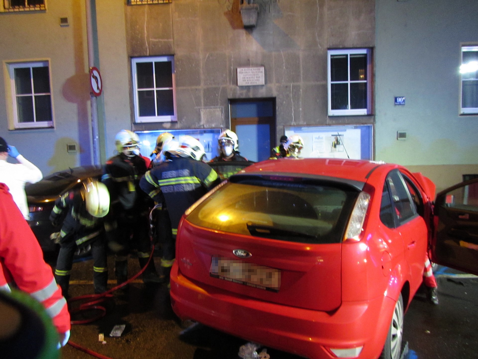 Die Feuerwehr Wiener Neustadt rückte unmittelbar nach der Notrufmeldung mit drei Fahrzeugen und über einem Dutzend Einsatzkräfte zum Einsatz aus. Vor Ort eingetroffen wurden 4 schwer beschädigte Autos angetroffen, welche über alle Fahrspuren der Grazerstraße verteilt standen. In einem Ford Focus saß die Lenkerin noch im Fahrzeug. Die Frau war zwar nicht im Fahrzeug eingeklemmt, konnte jedoch aufgrund ihrer schweren Verletzungen erst aus dem Fahrzeug befreit werden, nachdem die B- Säule des Fahrzeuges mithilfe eines hydraulischen Rettungssatzes entfernt wurde. In enger Abstimmung mit der anwesenden Notärztin führte die Feuerwehr die technische Rettung durch und unterstützte den Rettungsdienst in weiterer Folge bei der Personenrettung.