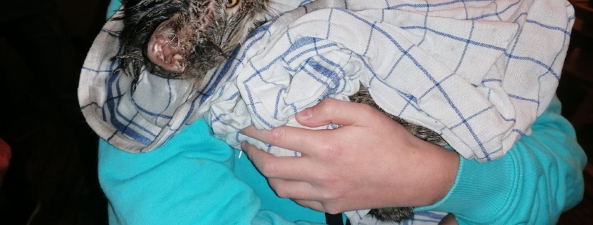 Eine Katze verstieg sich auf einem Dach und steckte in einem Fallrohr in einem Innenhof ganz oben an der Dachrinne fest. Nur der Kopf sah aus dem Rohr. Die ehrenamtlichen Kameraden der Feuerwehr Wiener Neustadt versuchten mit Pflanzenöl, Vaseline und Wasser die Katze aus dem Rohr zu befreien. Erst die Demontage der Dachrinne brachte den Erfolg und die Katze konnte der besorgten Besitzerin übergeben werden.