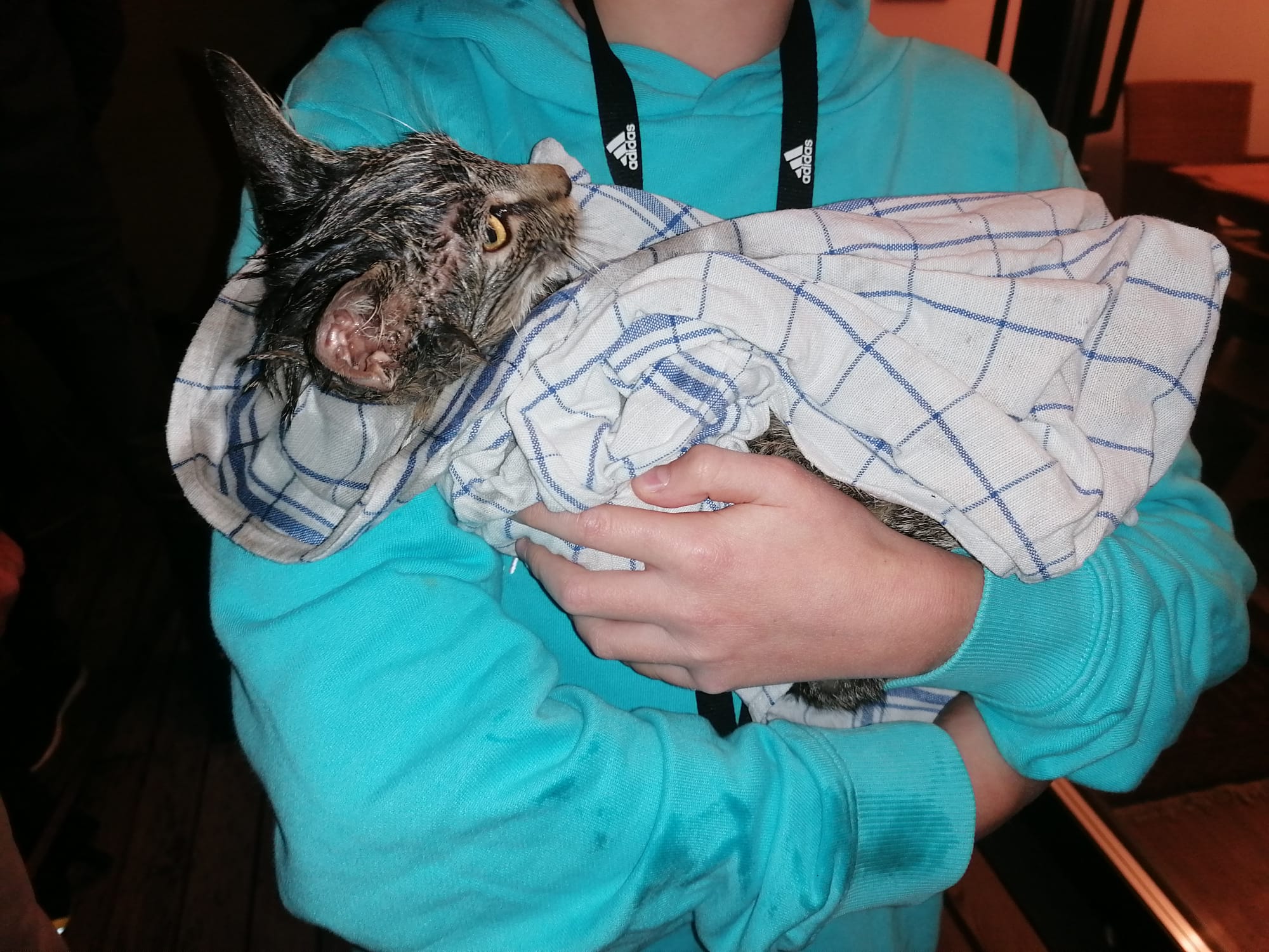 Eine Katze verstieg sich auf einem Dach und steckte in einem Fallrohr in einem Innenhof ganz oben an der Dachrinne fest. Nur der Kopf sah aus dem Rohr. Die ehrenamtlichen Kameraden der Feuerwehr Wiener Neustadt versuchten mit Pflanzenöl, Vaseline und Wasser die Katze aus dem Rohr zu befreien. Erst die Demontage der Dachrinne brachte den Erfolg und die Katze konnte der besorgten Besitzerin übergeben werden.