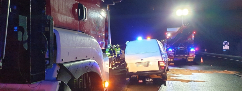 Kurz vor Mitternacht rückte die Nachtbereitschaft der Freiwilligen Feuerwehr Wiener Neustadt zur Fahrzeugbergung auf die Südautobahn aus. Kurze Zeit später rückten weitere Einsatzkräfte aus, welche von der Bezirksalarm- und Warnzentrale per Personenrufempfänger zum Einsatz alarmiert worden waren.