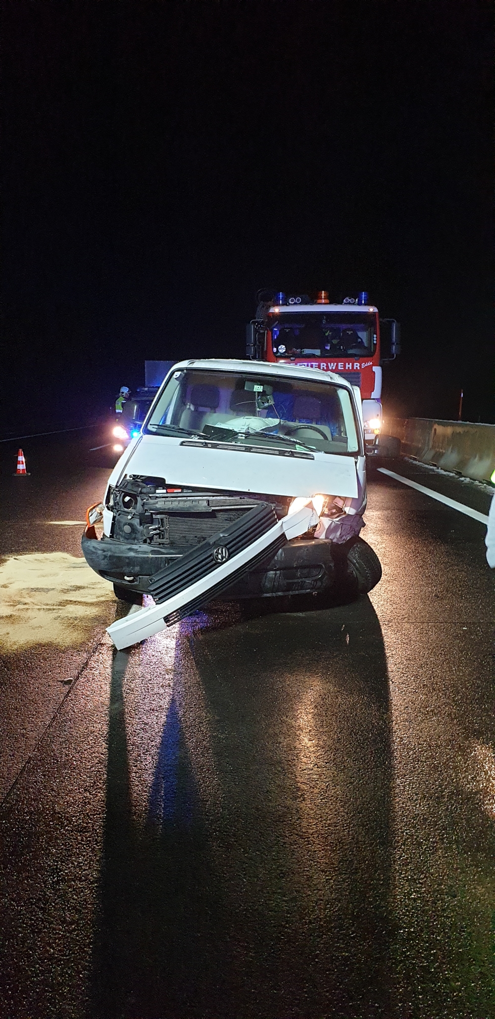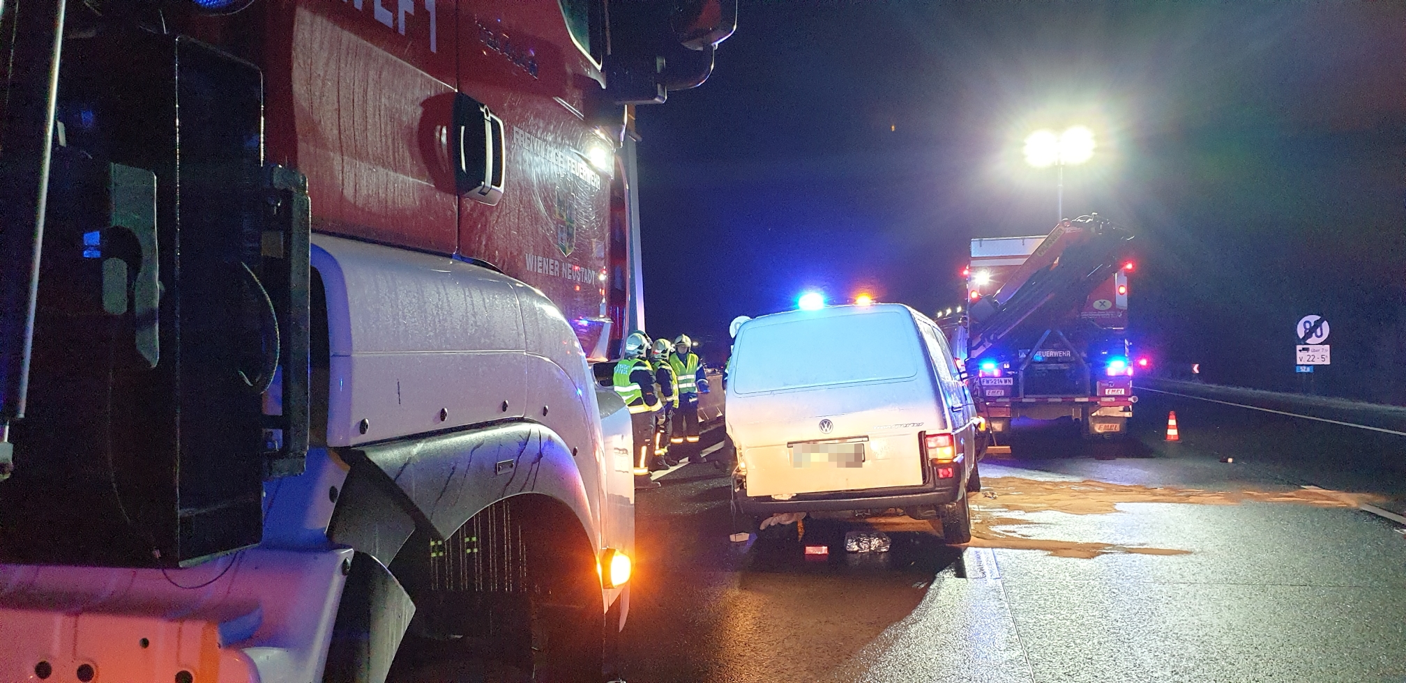 Ein kurioser Verkehrsunfall beschäftigte in der Nacht auf Samstag die Einsatzkräfte in Wiener Neustadt. Nach einem Unfall auf der Überholspur blieb ein VW Transporter fahrunfähig liegen. Während die Beifahrerin vom Roten Kreuz erstversorgt wurde, war der Unfalllenker vorerst nicht auffindbar. Er wurde von der Feuerwehr in einem Gebüsch abseits der Autobahn gefunden.
