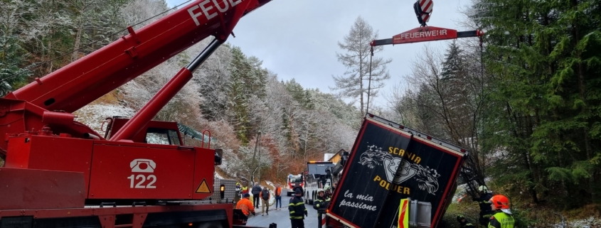 Zur Bergung eines verunfallten Sattelschleppers musste Montagfrüh das schwere Kranfahrzeug der Freiwilligen Feuerwehr Wiener Neustadt nach Pernitz ausrücken. Erst unter Einsatz zweier Bergefahrzeuge konnte der Sattelschlepper geborgen und in der Folge abtransportiert werden.