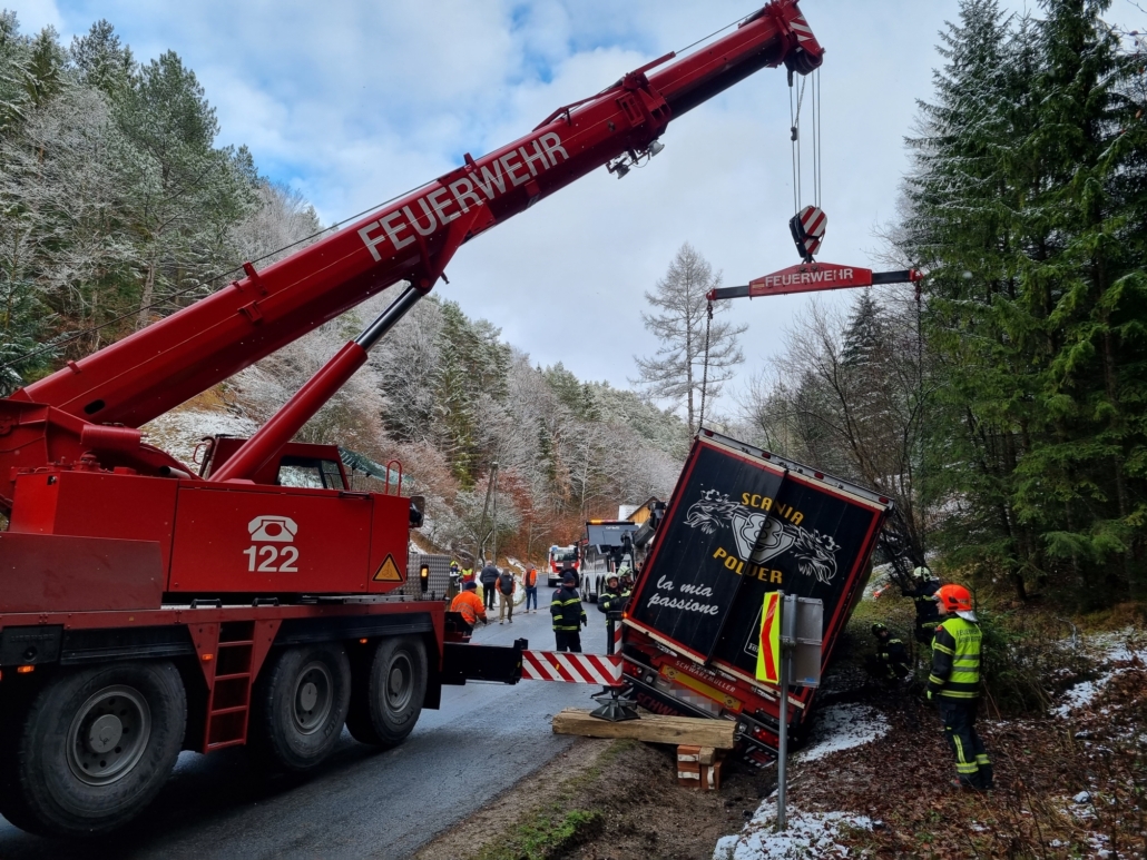 Zur Bergung eines verunfallten Sattelschleppers musste Montagfrüh das schwere Kranfahrzeug der Freiwilligen Feuerwehr Wiener Neustadt nach Pernitz ausrücken. Erst unter Einsatz zweier Bergefahrzeuge konnte der Sattelschlepper geborgen und in der Folge abtransportiert werden.