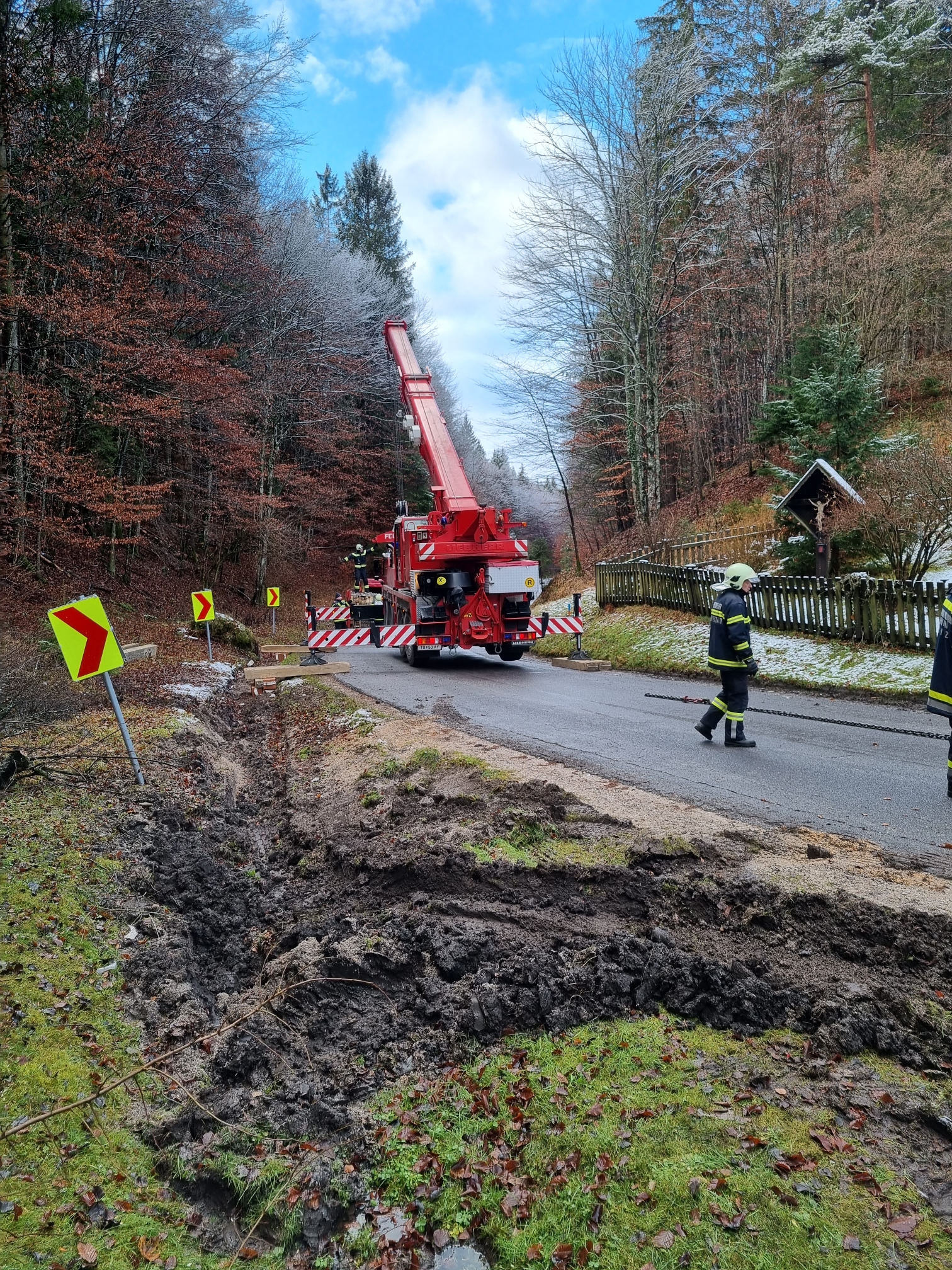 Nachdem ein Sattelschlepper in den Morgenstunden aus unbekannter Ursache von der Straße abkam und im Straßengraben stecken geblieben war, forderte der örtliche Einsatzleiter der Freiwilligen Feuerwehr Pernitz gegen 07.20 Uhr das schwere Kranfahrzeug der Freiwilligen Feuerwehr Wiener Neustadt an. Nach der Alarmierung der Kranmannschaft per Personenrufempfänger rückten kurze Zeit später der Kran mit mehreren Begleitfahrzeugen in Richtung Pernitz aus.