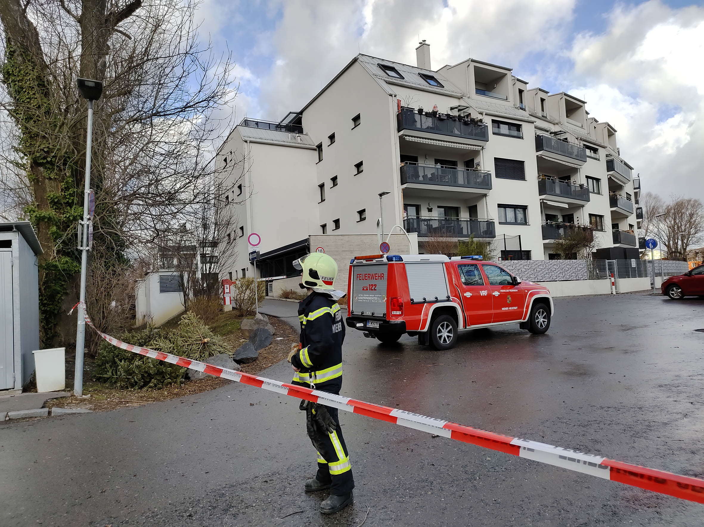In der Ein Fahrzeug der Feuerwehr Wiener Neustadt konnte in der Augasse einen losen Zaun mittels Bindedraht sichern, nachdem in der Birenzgasse Baustellengitter, Dämmmaterial und ein mobiles WC auf einer Baustelle gesichert werden mussten.
