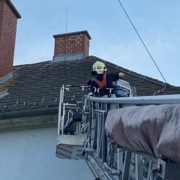 Drei Tage verschollen war eine Katze in Wiener Neustadt, als sie zufällig in einer Dachrinne entdeckt wurde. Das Tier war bei seiner Rettung am Donnerstag bereits durch die Hitze geschwächt und ließ sich von den Feuerwehrleuten Christian und Michael problemlos einfangen. Wieder am Boden angekommen wurde der Stubentiger mit einer Schale Wasser versorgt und an den erleichterten Besitzer übergeben.