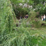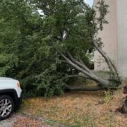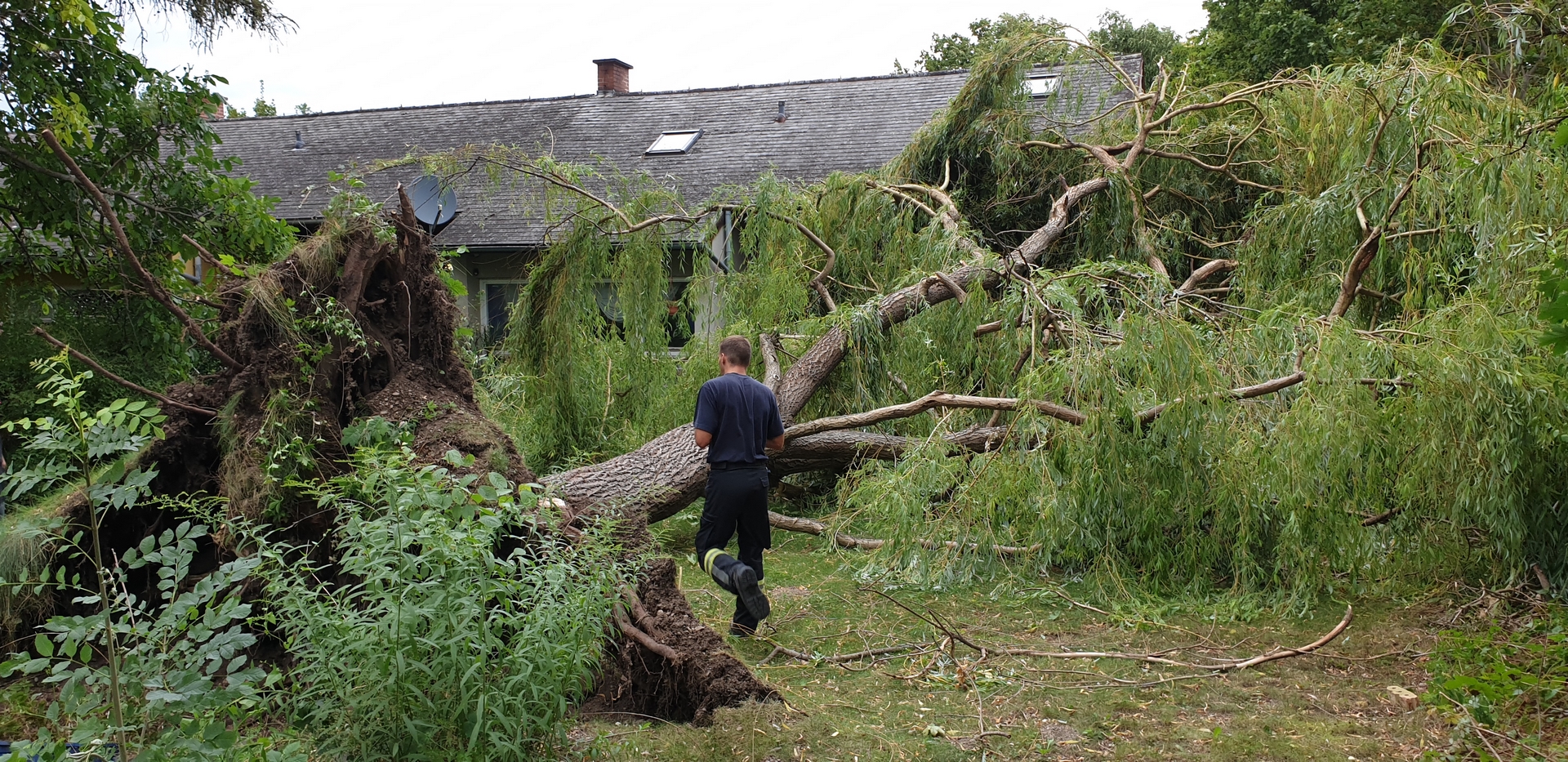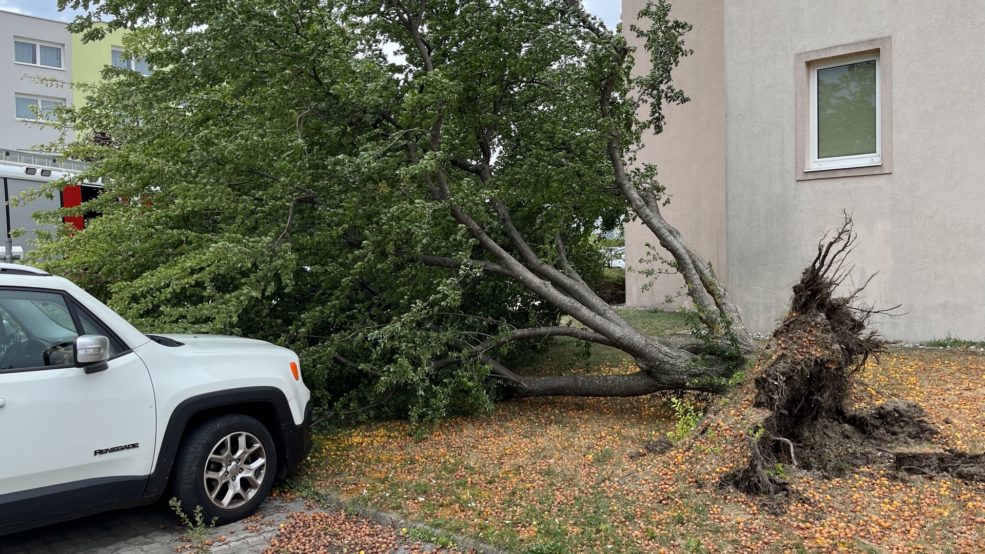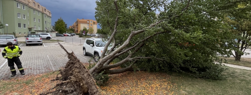 Am schlimmsten traf es ein Haus in der Katzelsdorfer Straße als ein Baum entwurzelt wurde und auf das Dach stürzte. In Mitleidenschaft gezogen wurde auch ein Pkw am Flugfeld, als ein Baum umstürzte und das Fahrzeug beschädigte.