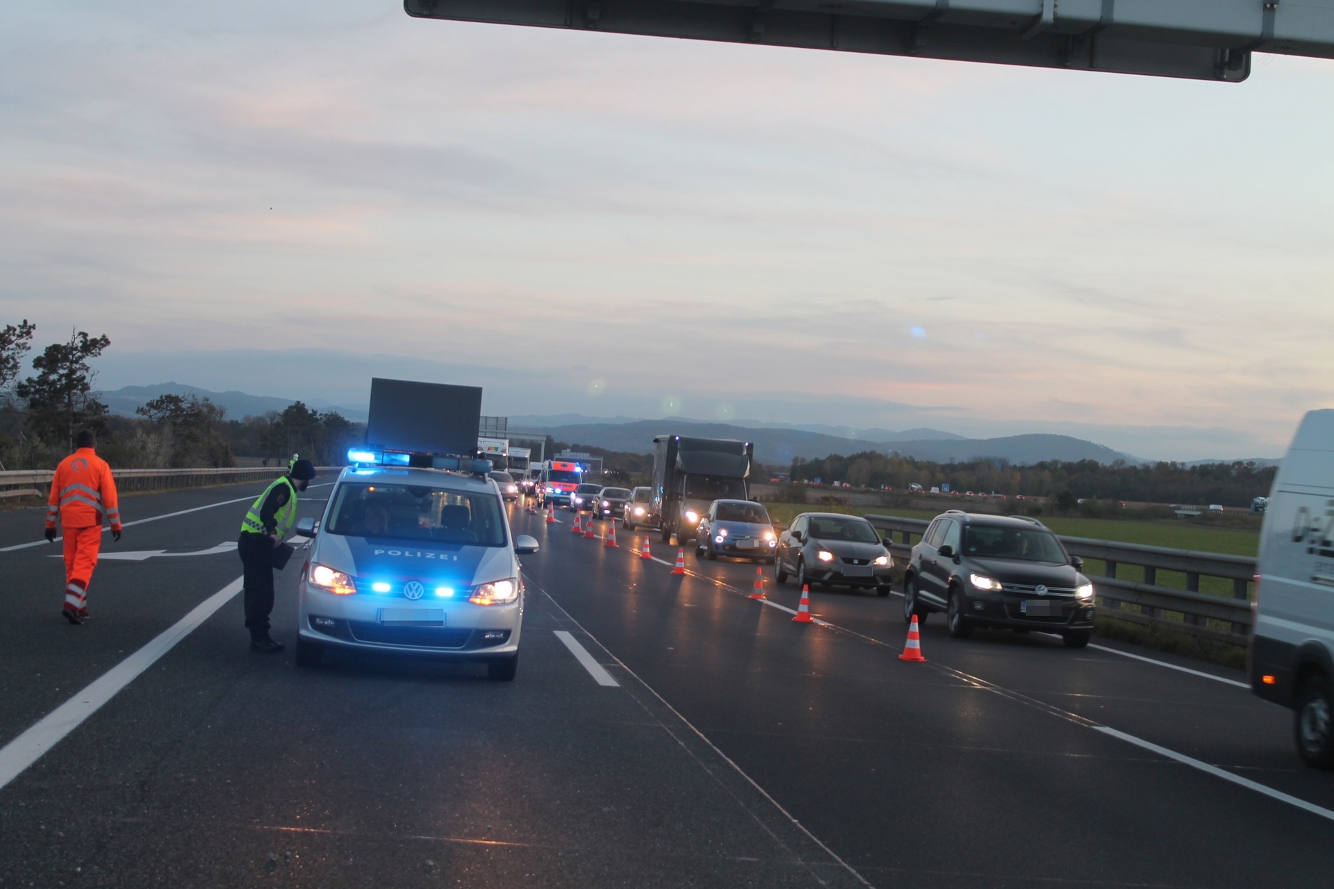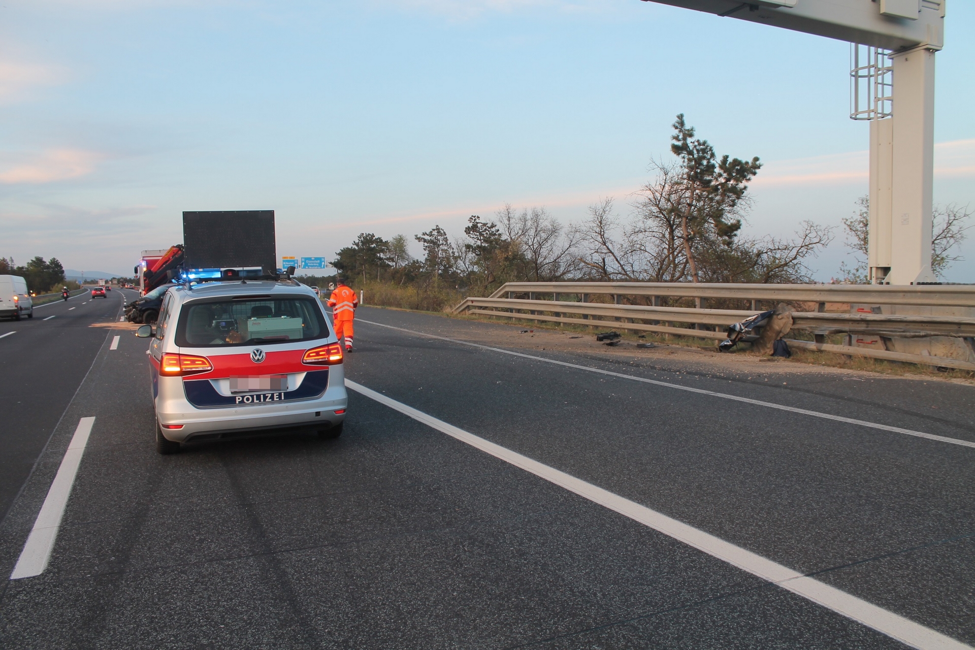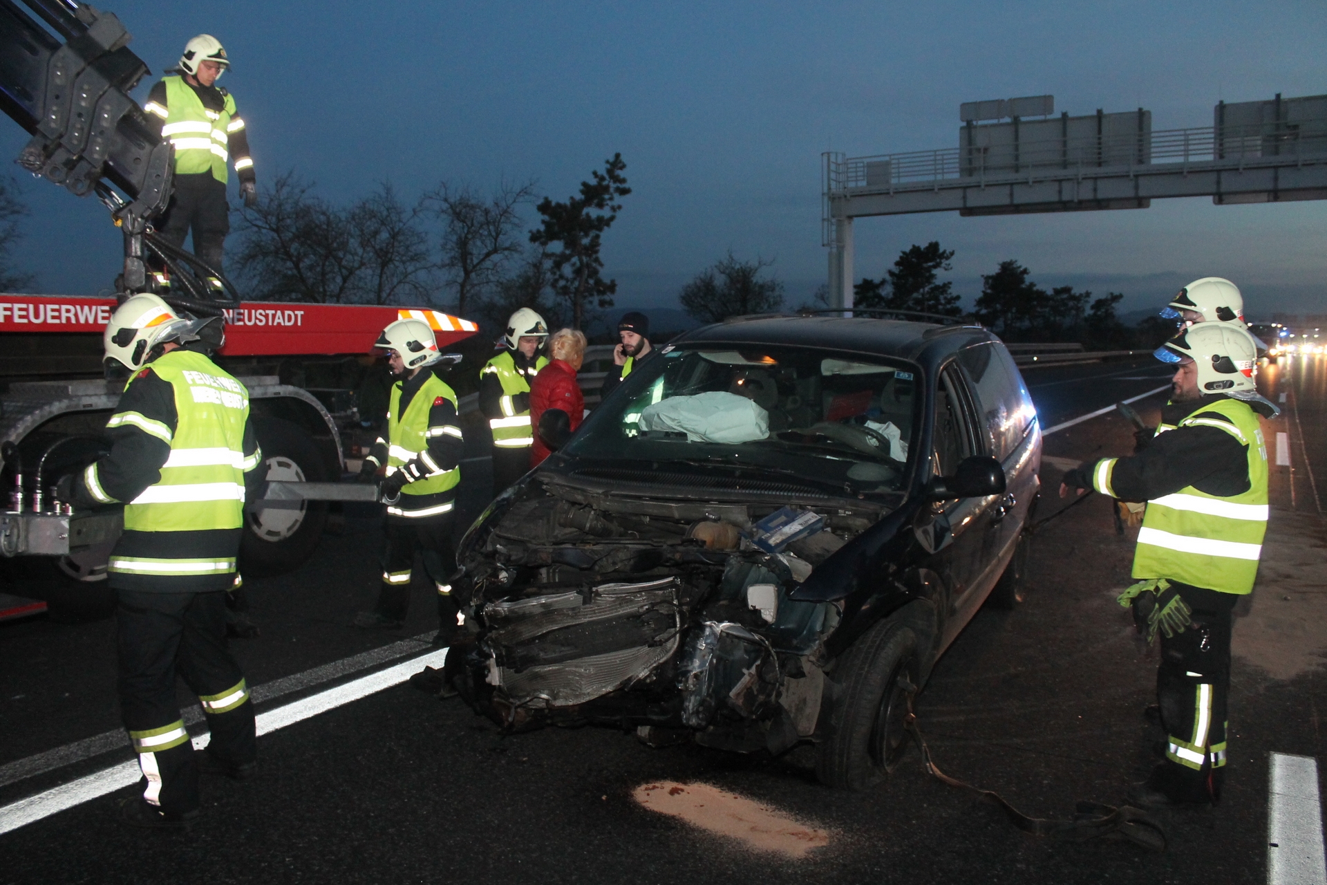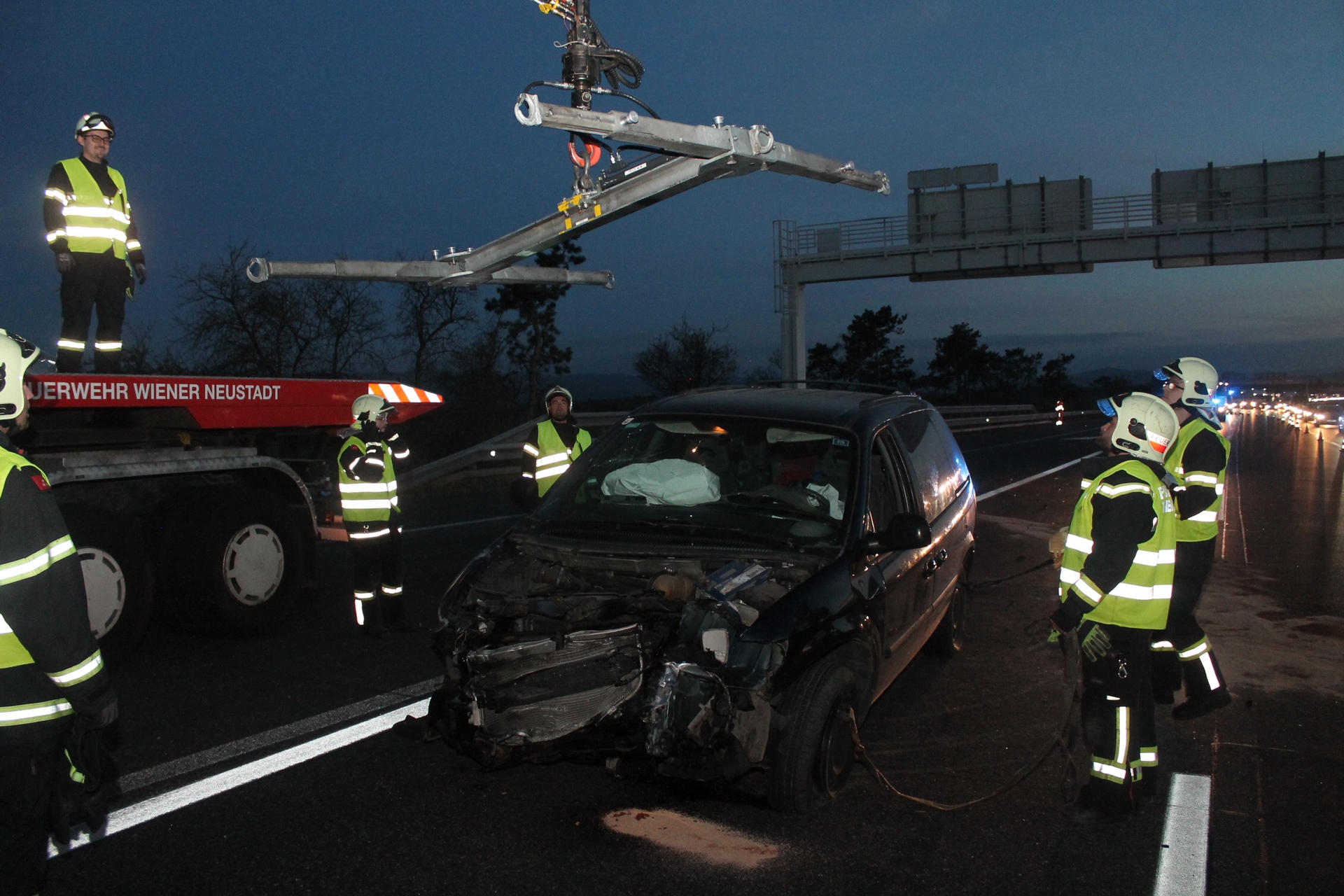 Einen langen Stau verursachte ein Verkehrsunfall auf der A2 in Fahrtrichtung Wien bei der Abfahrt zur S4. Nach einer Kollision zwischen zwei Pkws mussten zwei Spuren sowie die Abfahrt zur S4 über zwei Stunden gesperrt werden. Zur Reinigung der durch Betriebsmittel stark verschmutzten Fahrbahn musste eine Hochdruckkehrmaschine angefordert werden. Während die Freiwillige Feuerwehr Wiener Neustadt die Bergung eines der Unfallfahrzeuge durchführte, wurde das zweite Unfallfahrzeug von einem Privatunternehmen abtransportiert. Eine Person wurde leicht verletzt und vom Roten Kreuz ins Krankenhaus gebracht.