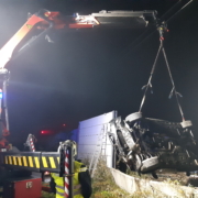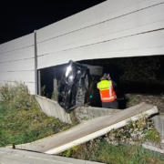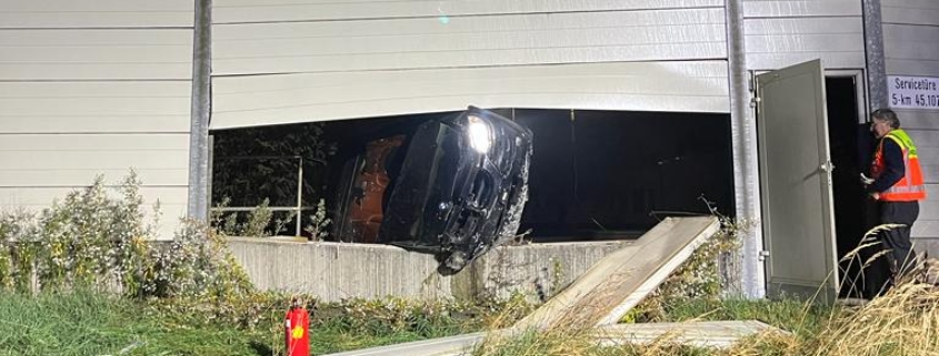 Aufgrund eines kuriosen Verkehrsunfalls musste in der Nacht auf Sonntag die Südbahn bei Wiener Neustadt kurzfristig gesperrt werden. Aus unbekannter Ursache verlor ein Autolenker die Kontrolle über seinen BMW. Das Fahrzeug schleuderte über den Gleiskörper der Südbahn, durchstieß die Lärmschutzwand und blieb ins Gleisbett ragend im Lärmschutz stecken.