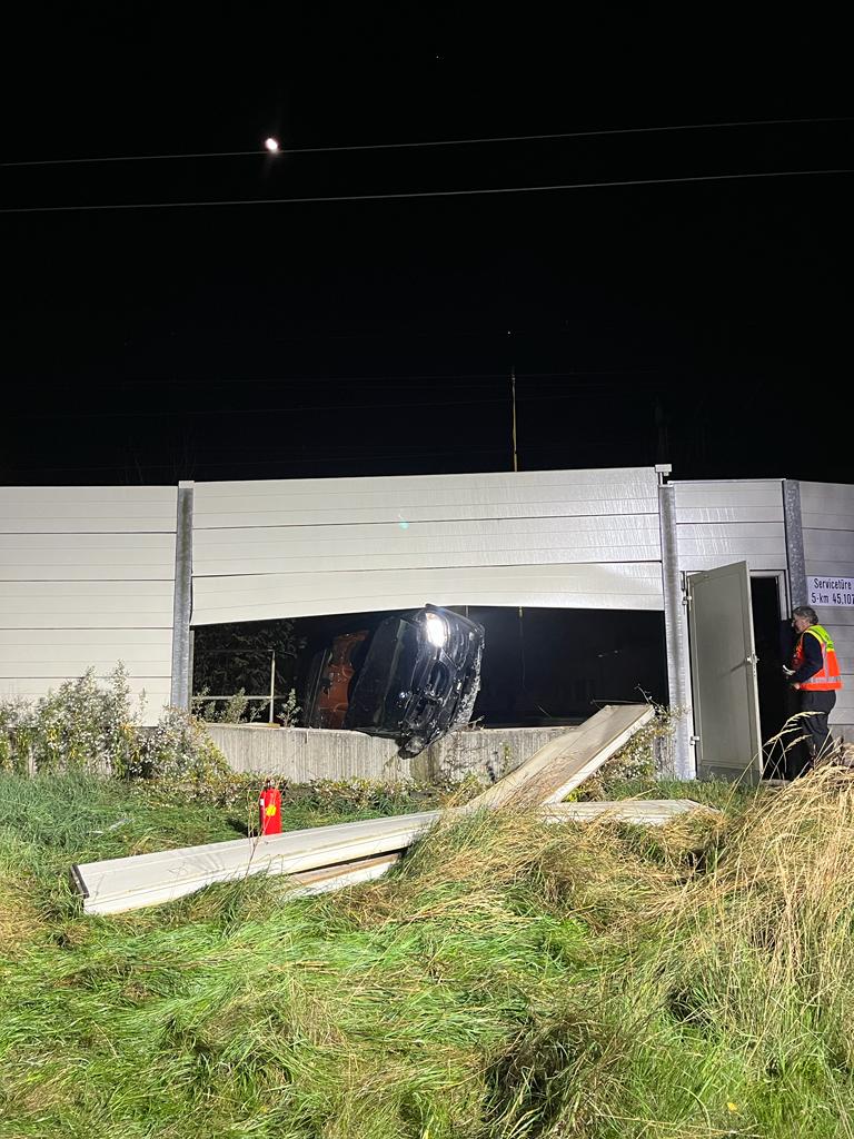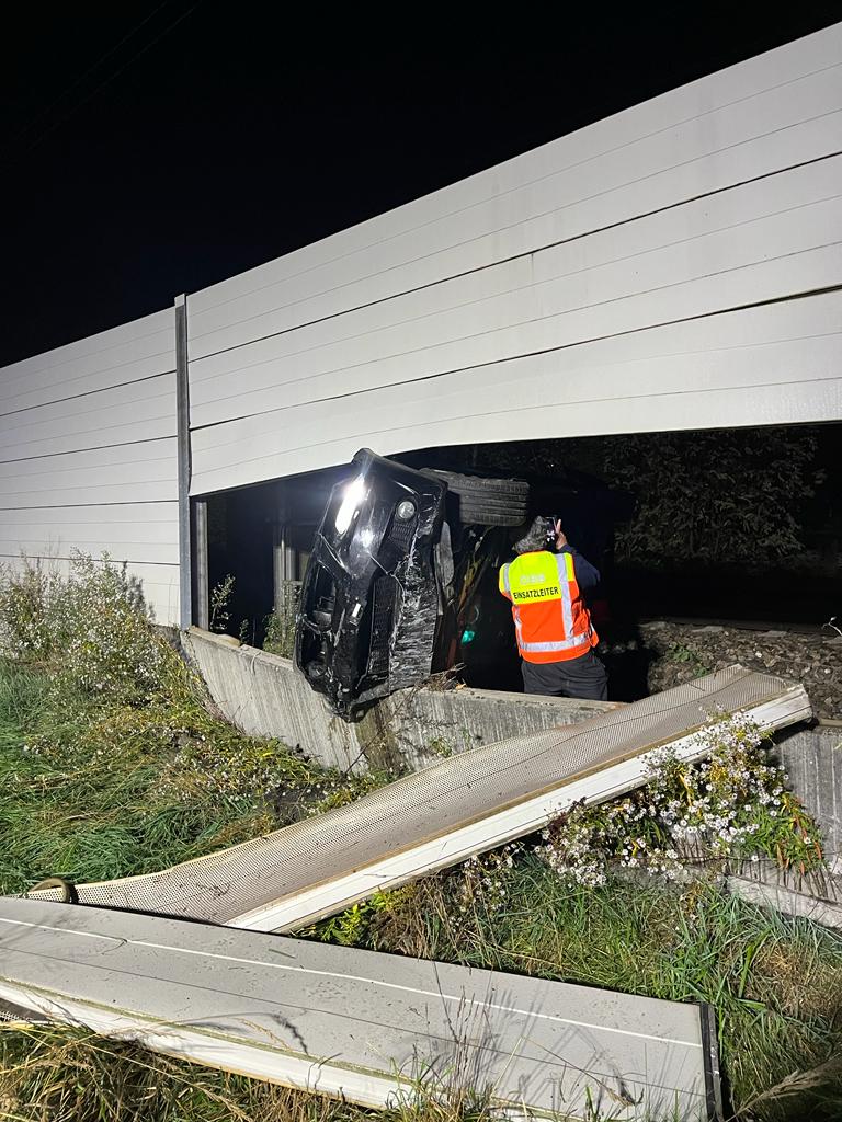Aufgrund eines kuriosen Verkehrsunfalls musste in der Nacht auf Sonntag die Südbahn bei Wiener Neustadt kurzfristig gesperrt werden. Aus unbekannter Ursache verlor ein Autolenker die Kontrolle über seinen BMW. Das Fahrzeug schleuderte über den Gleiskörper der Südbahn, durchstieß die Lärmschutzwand und blieb ins Gleisbett ragend im Lärmschutz stecken.