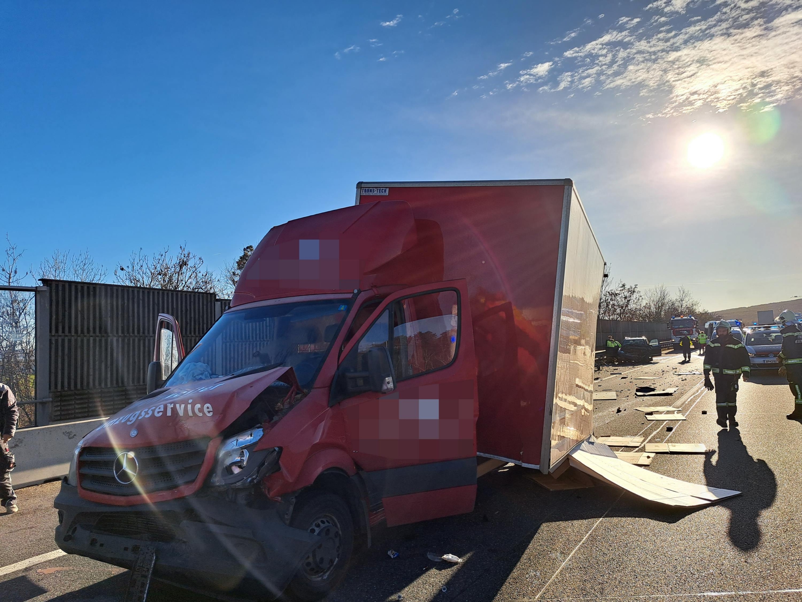 Die Einsatzkräfte trafen an der südlichsten Unfallstelle zuerst ein, wo ein SUV und ein Klein-Lkw zusammenstießen. Der Aufprall des SUV auf den Klein-Lkw war dermaßen energiereich, dass der Aufbau des Transporters vom Fahrgestell gerissen wurde. Der Lenker des SUV wurde von Ersthelfern und dem eingetroffenen Rettungsdienst bereits versorgt. Ein Teil der Mannschaft wurde zu der mehrere hundert Meter weiter nördlich gelegenen Einsatzstelle weitergelotst. Dort verlor ein älteres Ehepaar die Herrschaft über ihren Golf. Dabei stießen sie mit einem weißen Pkw und einem Lkw zusammen.