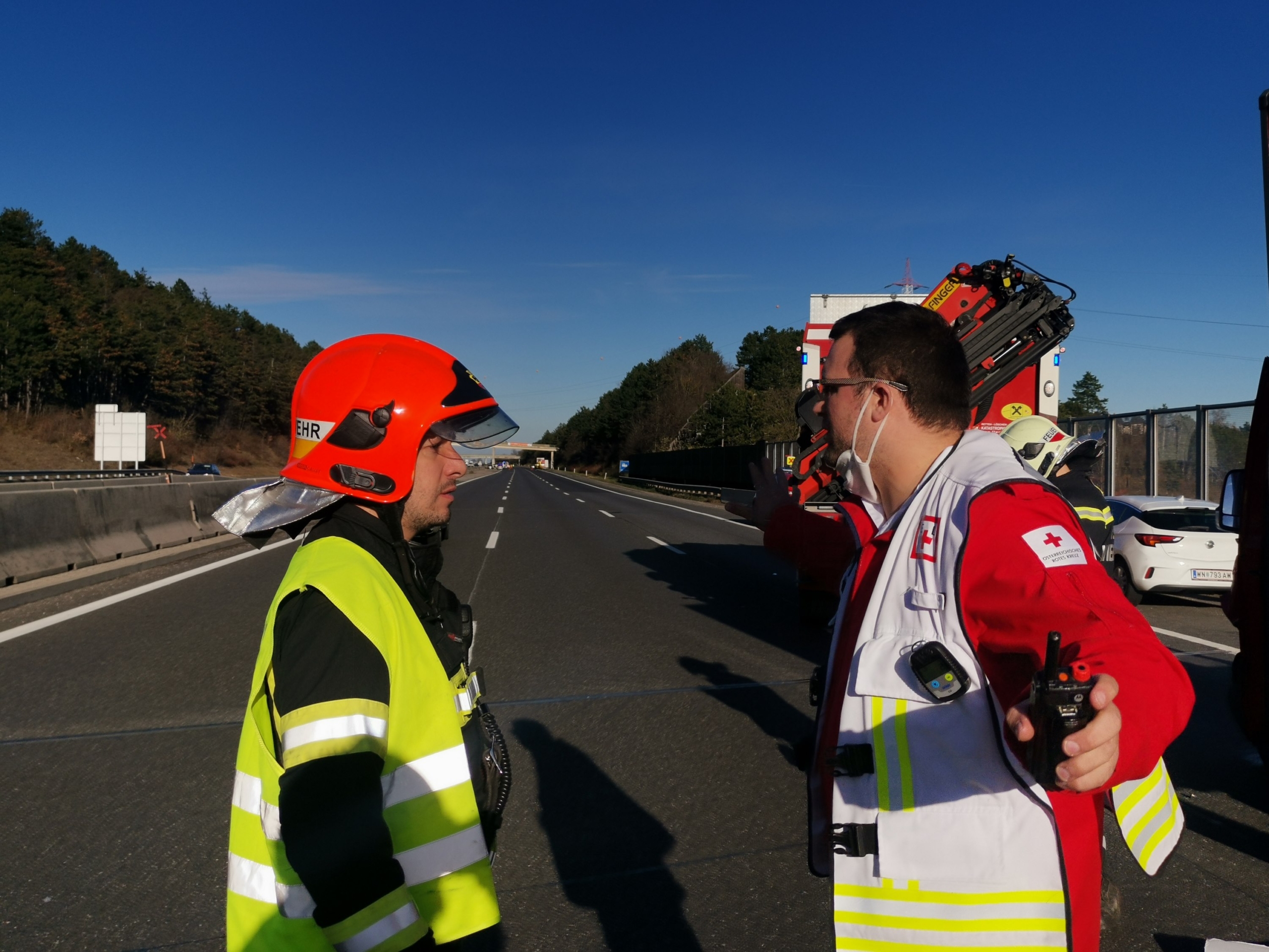 Der Lenker des weißen Pkw wurde ebenfalls beim Eintreffen der Feuerwehr bereits von Ersthelfern und dem Roten Kreuz versorgt. Da der Notarzthubschrauber Christophorus 9 landete, wurde die Autobahn für die Dauer der Rettungsarbeiten gesperrt. Währenddessen konnte die Feuerwehr bereits mit den Bergungsarbeiten beginnen. Zunächst mussten alle beteiligten und nicht fahrbereiten Fahrzeuge gesichert sowie stromlos gemacht werden. Ausgelaufene Betriebsmittel mussten ebenfalls gebunden werden. Die verletzten Lenker wurden durch die Rettungsdienste in verschiedene Krankenhäuser verbracht.