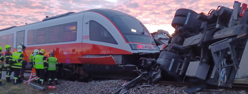 Der Unfall ereignete sich kurz nach 13 Uhr im Freilandgebiet auf der Zufahrt zur Alois Reiterer-Straße. Laut Polizeibericht wollte das Abschleppfahrzeug, welches einen Wohnwagen auf der Abschleppbrille transportierte „einen dortigen unbeschrankten, mit Rotlicht und Verkehrszeichen gesicherten Bahnübergang der Gutensteinerlinie überqueren. Sein Beifahrer, ein 23-jähriger Mann aus dem Bezirk Wiener Neustadt, befand sich zum Zeitpunkt des Unfalls als Fußgänger auf der Fahrbahn. Auf der Abschleppachse des Lkws befand sich ein Wohnwagen. Der 23-Jährige soll ausgestiegen sein, um nachzusehen, ob sich die Abschleppachse beim Überqueren des Bahnübergangs nicht in den Schienen verfängt. Ein herannahender Personenzug, der von Bad Fischau-Brunn in Richtung Wöllersdorf fuhr, kollidierte mit dem auf dem Bahnübergang stehenden Lkw. Durch die Wucht des seitlichen Anpralls drehte sich der Lkw ein, wurde vom Zug mitgeschliffen und kippte dann um. Die Zugsgarnitur sprang aus den Gleisen und konnte die Fahrt nicht fortsetzen.“ [Quelle: Presseaussendung Polizei]