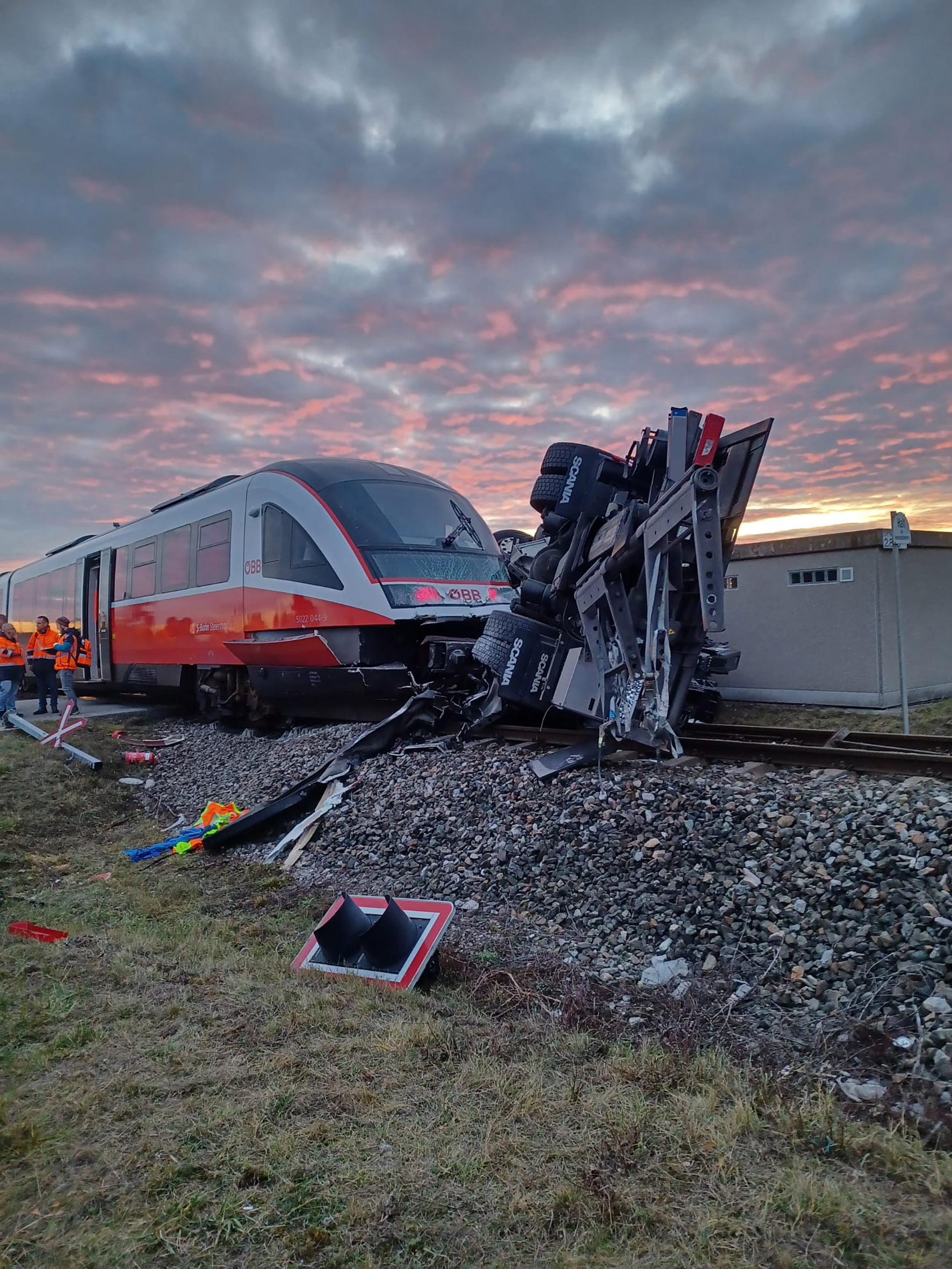 Der Unfall ereignete sich kurz nach 13 Uhr im Freilandgebiet auf der Zufahrt zur Alois Reiterer-Straße. Laut Polizeibericht wollte das Abschleppfahrzeug, welches einen Wohnwagen auf der Abschleppbrille transportierte „einen dortigen unbeschrankten, mit Rotlicht und Verkehrszeichen gesicherten Bahnübergang der Gutensteinerlinie überqueren. Sein Beifahrer, ein 23-jähriger Mann aus dem Bezirk Wiener Neustadt, befand sich zum Zeitpunkt des Unfalls als Fußgänger auf der Fahrbahn. Auf der Abschleppachse des Lkws befand sich ein Wohnwagen. Der 23-Jährige soll ausgestiegen sein, um nachzusehen, ob sich die Abschleppachse beim Überqueren des Bahnübergangs nicht in den Schienen verfängt. Ein herannahender Personenzug, der von Bad Fischau-Brunn in Richtung Wöllersdorf fuhr, kollidierte mit dem auf dem Bahnübergang stehenden Lkw. Durch die Wucht des seitlichen Anpralls drehte sich der Lkw ein, wurde vom Zug mitgeschliffen und kippte dann um. Die Zugsgarnitur sprang aus den Gleisen und konnte die Fahrt nicht fortsetzen.“ [Quelle: Presseaussendung Polizei]