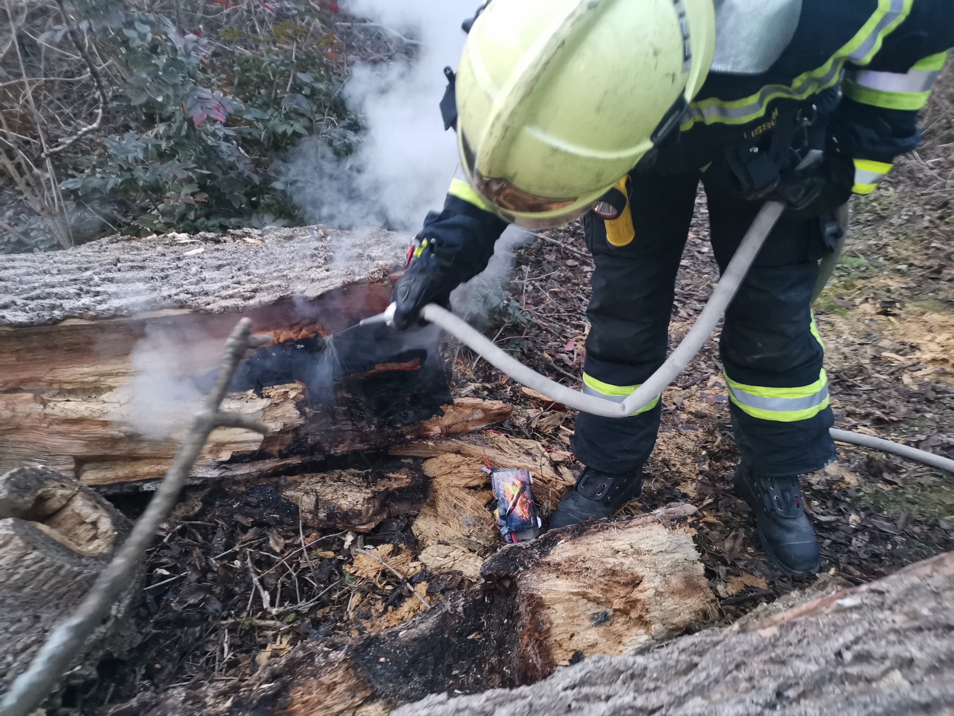 Begonnen hatte der „Silvesterdienst“ der FF Wr. Neustadt bereits am Nachmittag, als die Einsatzkräfte zu einem Waldstück in der Wiener Neustädter Schmuckerau ausrücken mussten. Ein ausgehöhlter Baumstumpf war dort mit Pyrotechnik in Brand gesetzt worden. Das Feuer konnte jedoch rasch abgelöscht werden, bevor es sich im Flurbereich ausbreiten konnte.