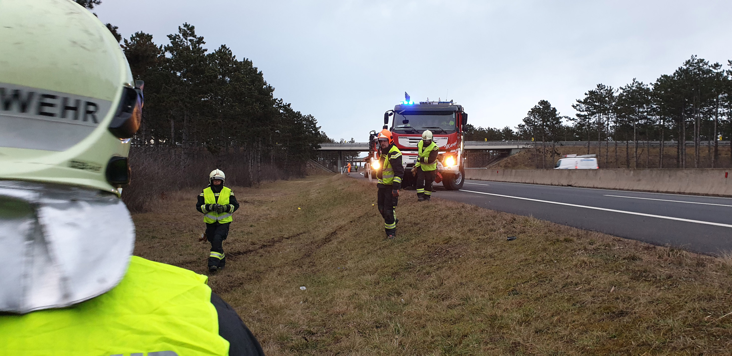 Für die vor den Einsätzen Fahrzeugbergung auf der S4, wo ein Lenker eines Klein-Lkw von der Fahrbahn abkam und vom Föhrenwäldchen gestoppt wurde, waren 12 Mitglieder mit drei Fahrzeugen im Einsatz. Keiner der Insassen wurde verletzt.