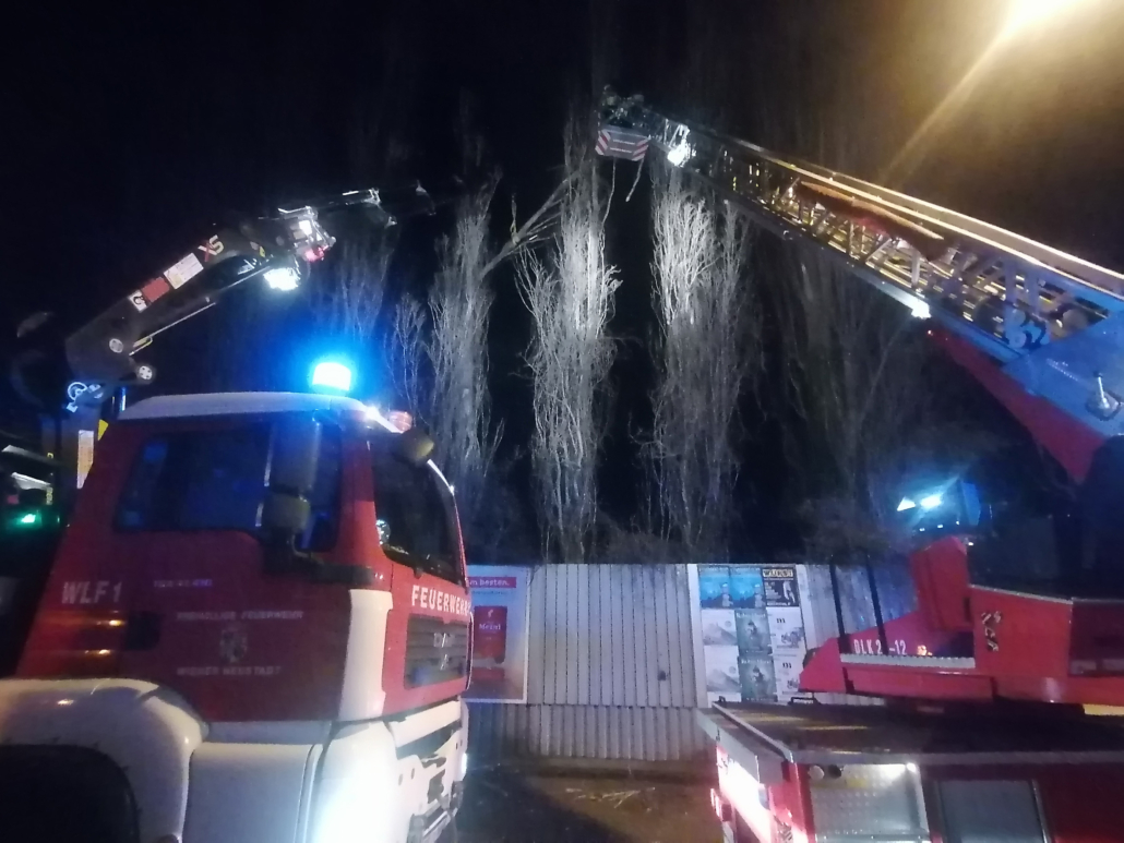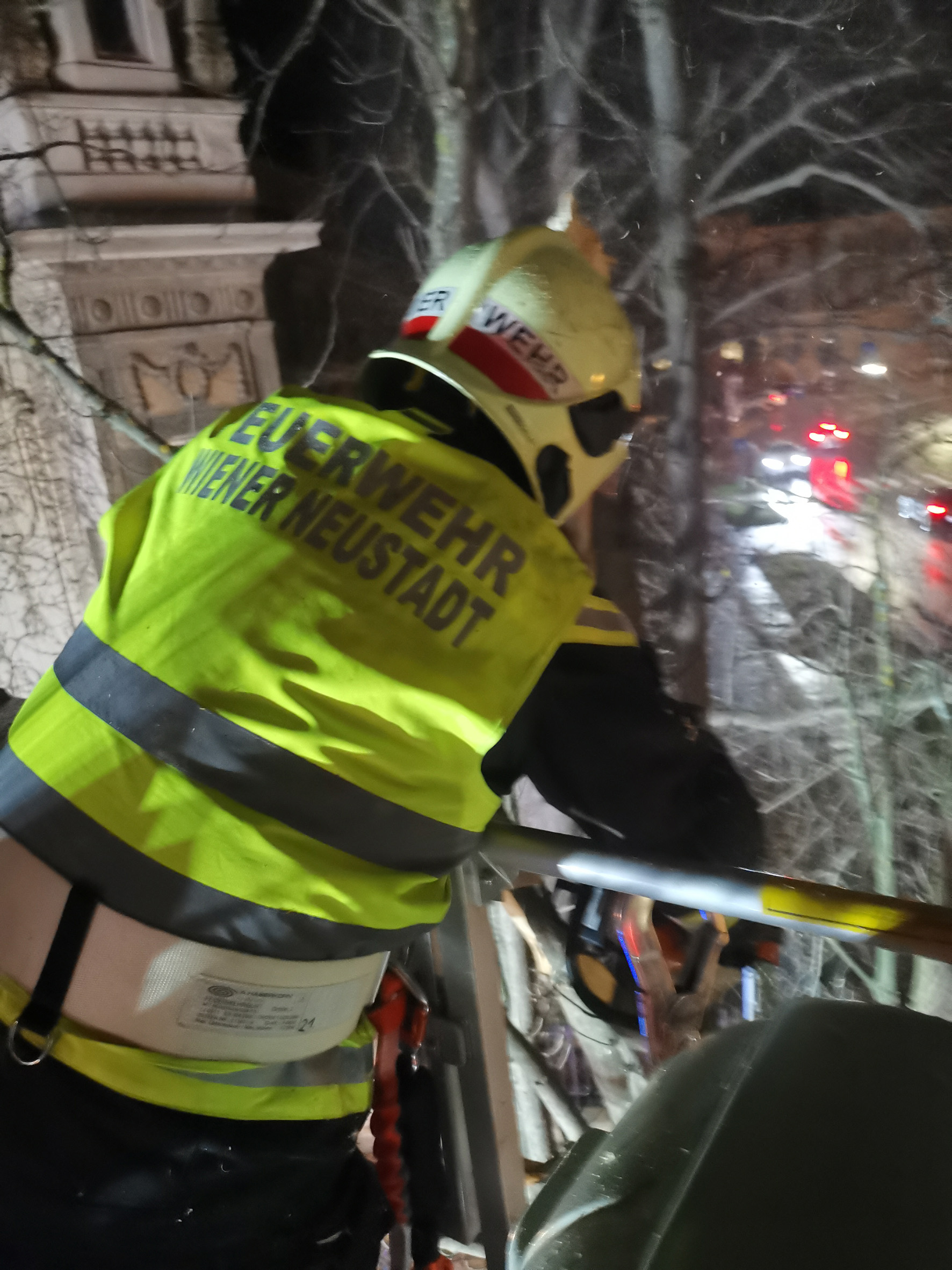 Am Nachmittag des 30. Jänner 2023 erreichte starker Wind Wiener Neustadt. Die heftigen Böen aus unterschiedlichen Richtungen setzten besonders zwei schon angeschlagenen Bäumen zu, welche zur Gefahr für Passanten wurden.