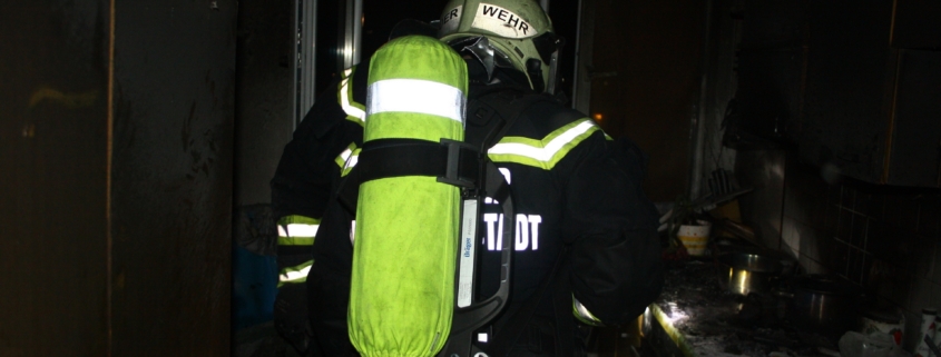 Beim Eintreffen des ersten Feuerwehrfahrzeuges war das Stiegenhaus bereits stark verraucht. Der Brand konnte vom Atemschutztrupp rasch in der Küche lokalisiert und mittels einer Löschleitung unter Kontrolle gebracht werden. Zeitgleich führte ein zweiter Trupp mit einer Wärmebildkamera eine Personensuche in der stark verrauchten Wohnung durch, da zu diesem Zeitpunkt noch nicht klar war, wo sich die Bewohner der Wohnung aufhielten. Die Bewohnerin wurde etwas später jedoch glücklicherweise bei den Nachbarn gefunden. Sie war nach Brandausbruch geflüchtet, erlitt jedoch eine Rauchgasvergiftung und musste vom Roten Kreuz versorgt und ins Krankenhaus transportiert werden.