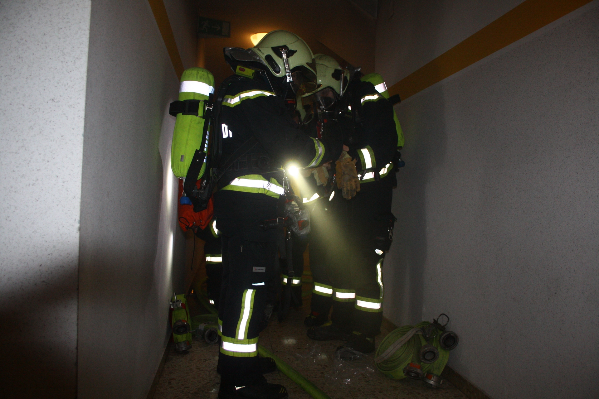 Beim Eintreffen des ersten Feuerwehrfahrzeuges war das Stiegenhaus bereits stark verraucht. Der Brand konnte vom Atemschutztrupp rasch in der Küche lokalisiert und mittels einer Löschleitung unter Kontrolle gebracht werden. Zeitgleich führte ein zweiter Trupp mit einer Wärmebildkamera eine Personensuche in der stark verrauchten Wohnung durch, da zu diesem Zeitpunkt noch nicht klar war, wo sich die Bewohner der Wohnung aufhielten. Die Bewohnerin wurde etwas später jedoch glücklicherweise bei den Nachbarn gefunden. Sie war nach Brandausbruch geflüchtet, erlitt jedoch eine Rauchgasvergiftung und musste vom Roten Kreuz versorgt und ins Krankenhaus transportiert werden.