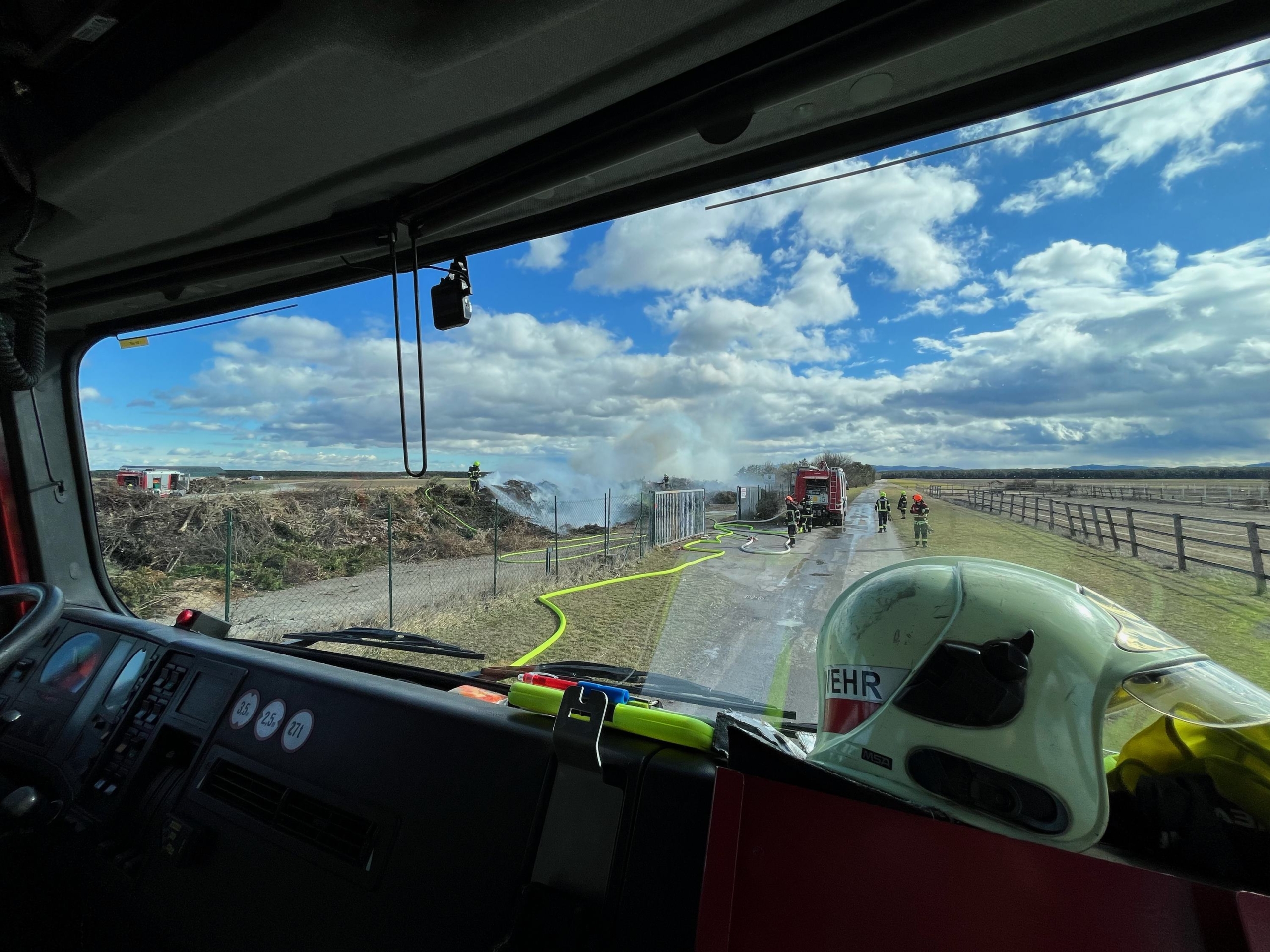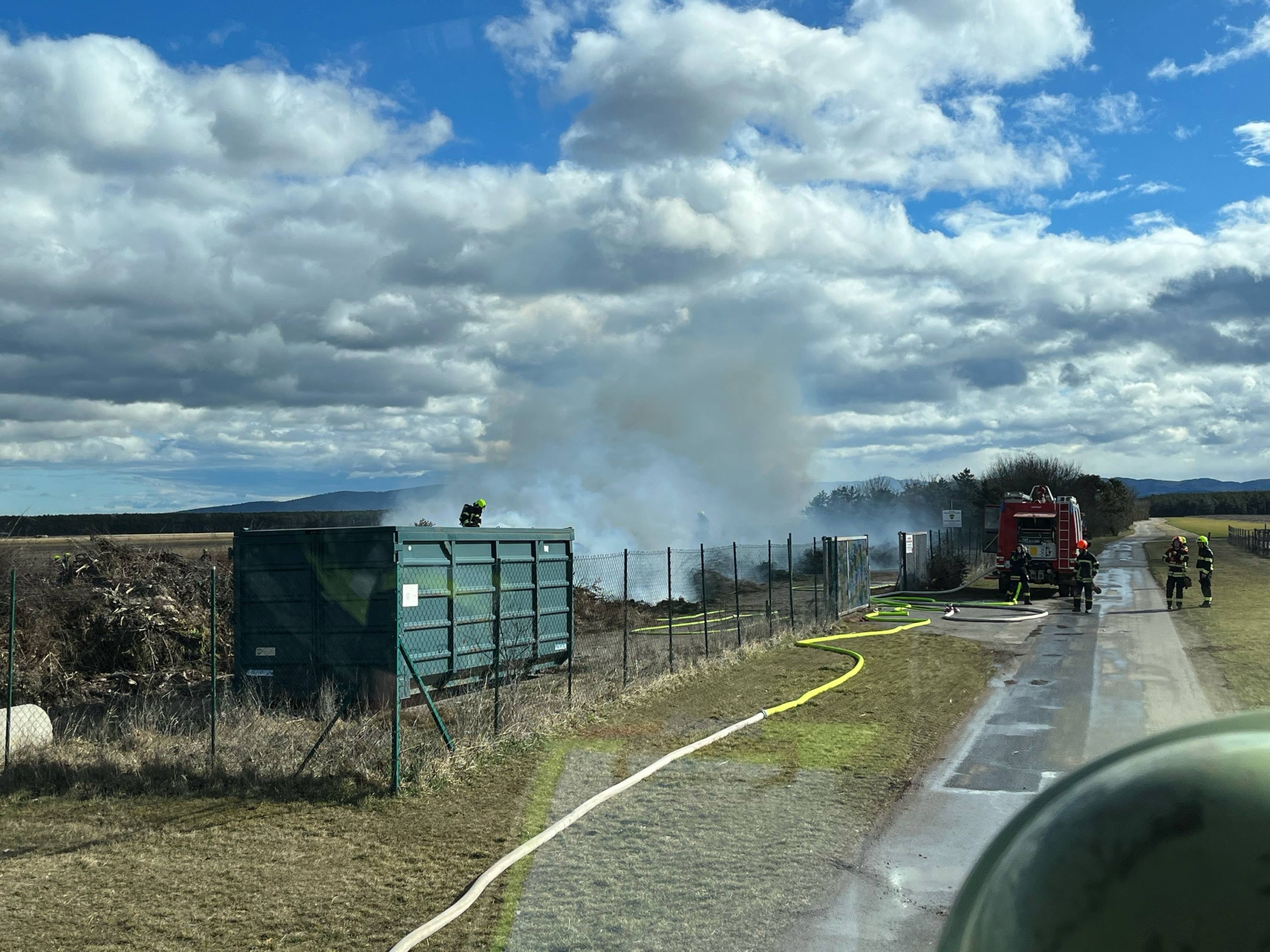 Zu einem Brand am Grünschnittplatz der Gemeinde Weikersdorf wurde am 19.2.2023 die Feuerwehr Wiener Neustadt zur Unterstützung gerufen.