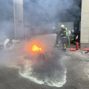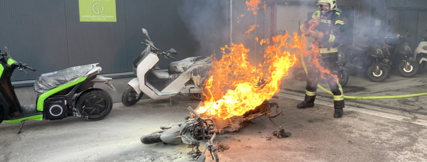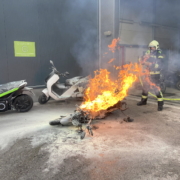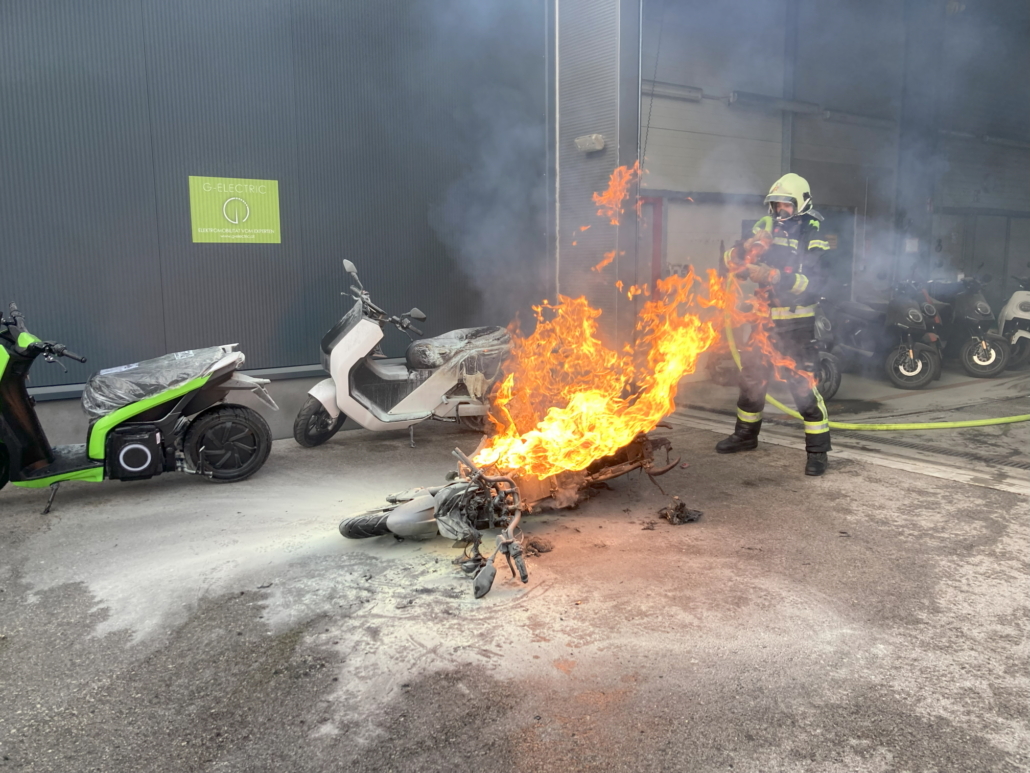 Beherztes Eingreifen von Werkstättenmitarbeitern sowie das rasche Eintreffen der Freiwilligen Feuerwehr Wiener Neustadt verhinderten am Mittwochabend einen Werkstättenbrand in Wiener Neustadt. Ein Elektromotorrad begann während des Ladevorgangs in der der Halle plötzlich zu brennen. Obwohl der Brand rasch gelöscht war, zündete der Akku des Elektrofahrzeuges immer wieder durch. Erst durch ein Wasserbad konnte das Feuer nachhaltig bekämpft werden. Beim Versuch, das vermeintlich gelöschte, Motorrad aus der Halle zu schieben, verletzte sich ein Feuerwehrmann leicht durch eine plötzliche Durchzündung.