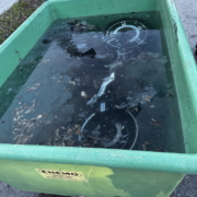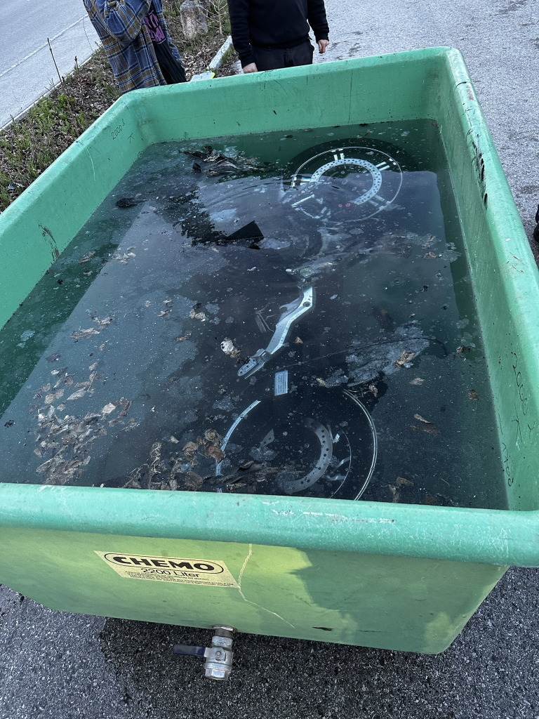 Einsatzleiter Pfeiffer fasst die Problematik zusammen: „Wieder aufflammende Brände bei Elektrofahrzeugen sind eine bekannte Gefahr, auf welche sich die Feuerwehren in den letzten Jahren neu einstellen mussten. Aufgrund der nachhaltig hohen Temperaturen der Lithiumakkus nach einem Brandereignis besteht die Gefahr einer Wiederentflammung. Die Akkus müssen daher nach einem Brand mindestens 24- Stunden in einem Wasserbad gelagert werden, um sie sicher abzukühlen. Das Wasser muss anschließend einer Sondermüllentsorgung zugeführt werden. Dies stellt die Feuerwehren vor besondere Herausforderungen.“