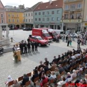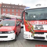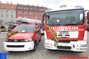Die neuen Einstazfahrzeuge, ein Mannschaftstransportfahrzeug und ein Tanklöschfahrzeug wurden von unserem Feuerwehrkuraten gesegnet und somit offiziell in Dienst gestellt. Im Rahmen des Festaktes konnten wir Hrn. Vizebürgermeister Dr. Christian Stocker und Hrn. Laszlo Marton Geschenke in Form einer handgeschnitzten Florianistatue überreichen.