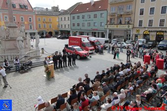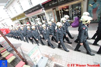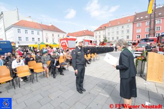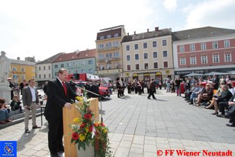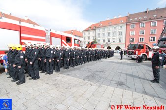 Am 04.05.2013 fand der traditionelle Hauptrapport der Freiwilligen Feuerwehr Wiener Neustadt statt. Kommandant BD BR Bugnar konnte zahlreiche Gäste zu diesem Festakt auf dem Wiener Neustädter Hauptplatz begrüssen. An der Spitze Bürgermeister Bernhard Müller, BA und Frau Landesrat Dr. Petra Bohuslav. Im Rahmen des von Christian Schützl moderierten Festaktes konnten wieder Angelobungen und Beförderungen durchgeführt und Ehrungen und Auszeichnungen an verdiente Personen überreicht werden.